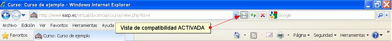 Esto puede resolverse en las versiones 8 o superiores activando la "Vista de compatibilidad". En la siguiente imagen mostramos el botón que tenemos que clickar para activarla.