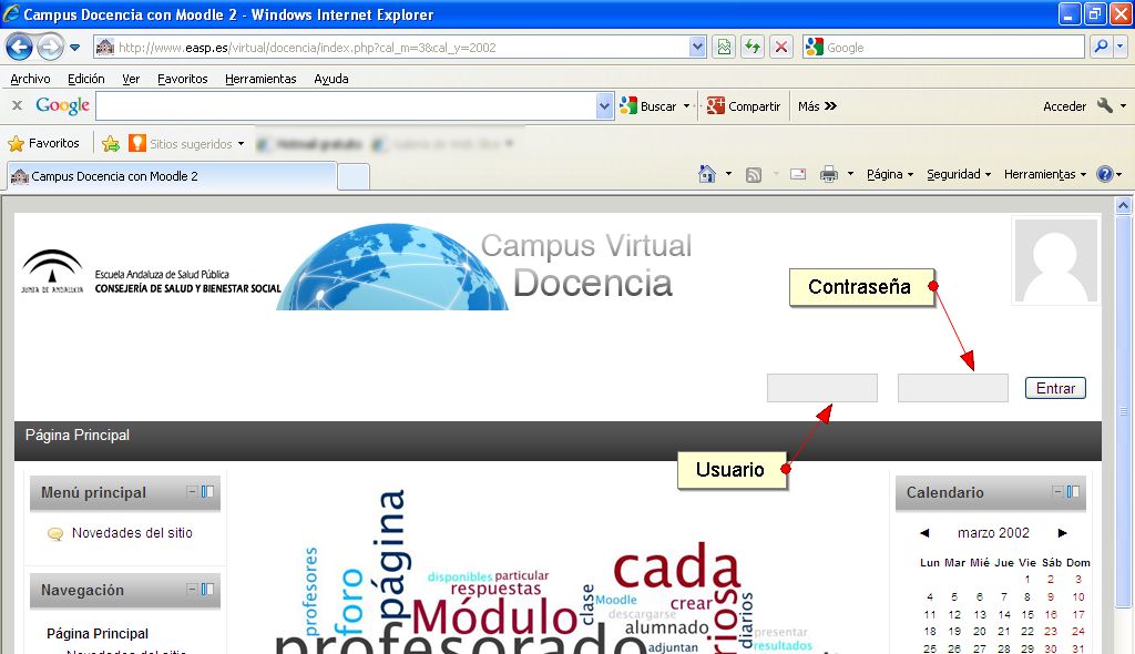 En algunas versiones de Explorer, la pantalla de acceso al campus virtual no muestra correctamente toda la información.