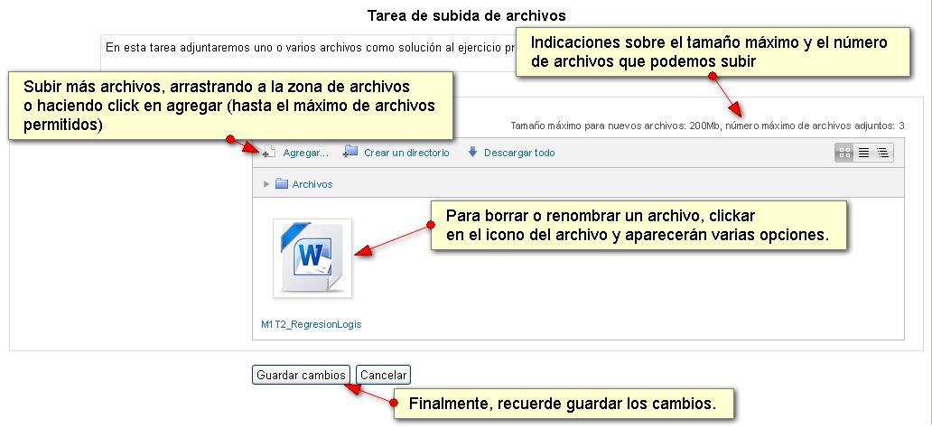 Aquí podemos subir más archivos, borrarlos, renombrarlos, descargarlos.... y "Guardar cambios" para finalizar.