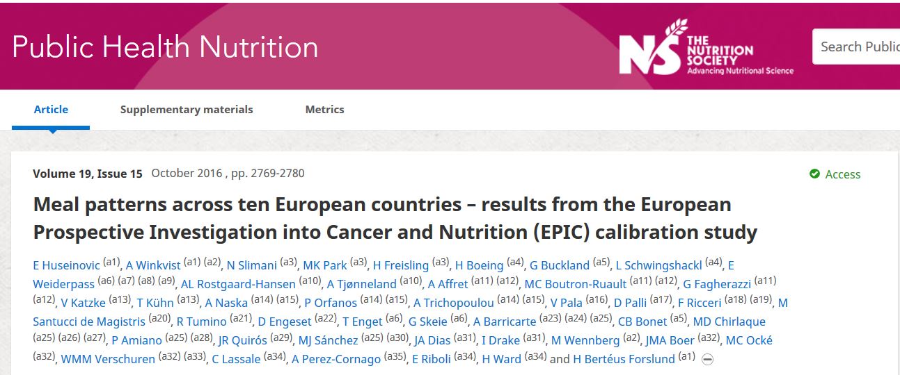 Pronounced differences in meal patterns emerged both across centres within the same country and across different countries, with a trend for fewer intake occasions per day in Mediterranean countries compared with central and northern Europe. Differences were also found for daily energy intake provided by lunch, with 38–43 % for women and 41–45 % for men within Mediterranean countries compared with 16–27 % for women and 20–26 % for men in central and northern European countries. Likewise, a south–north gradient was found for daily energy intake from snacks, with 13–20 % (women) and 10–17 % (men) in Mediterranean countries compared with 24–34 % (women) and 23–35 % (men) in central/northern Europe.