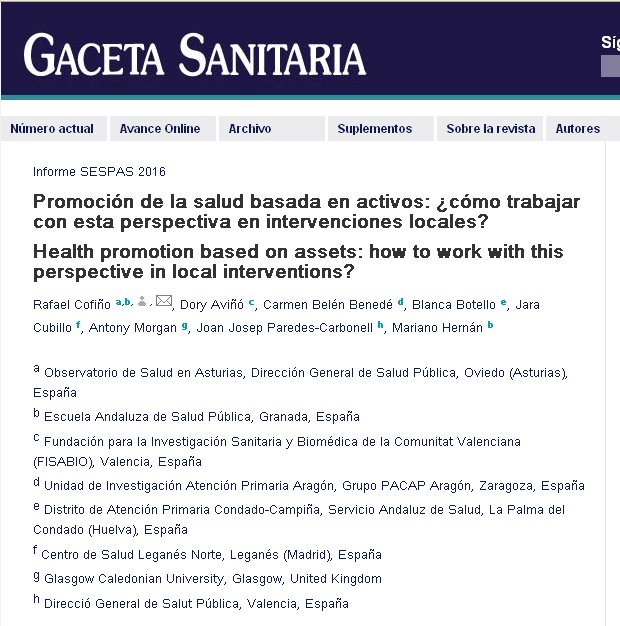 La incorporación del modelo de activos para la salud en las intervenciones de salud comunitaria/promoción de la salud puede reforzar aspectos relacionados con la equidad, la orientación a los determinantes sociales, la intersectorialidad y la participación en dichas intervenciones.
