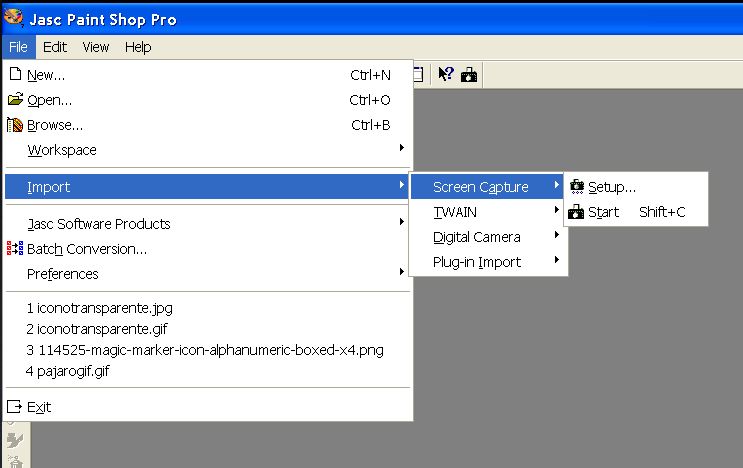PaintShop Pro incluye su propia herramienta de captura de pantalla, accesible desde esta opción:
