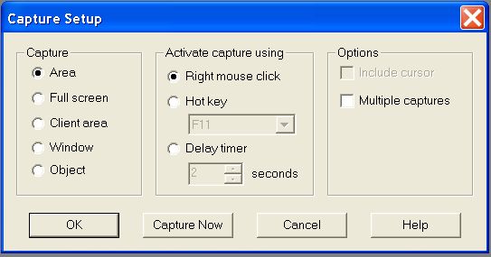Primero definimos el área que vamos a capturar, tal como se muestra a continuación, y despues activamos la herramienta con click derecho y marcamos la zona a capturar (si hemos definido que capturaremos una zona concreta) con el click izquierdo.
