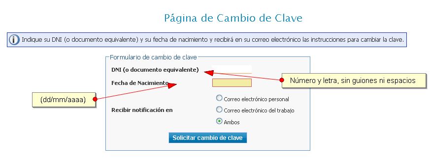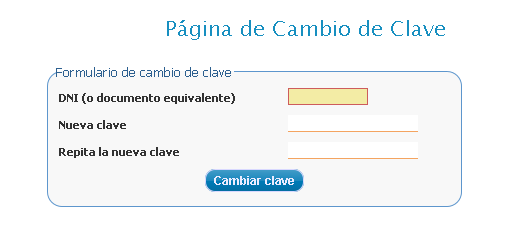 Esto es normal, y se debe únicamente a que los datos de usuario y contraseña se almacenan en un sistema integral de gestión. En esta página de cambio de clave, debe indicar tanto su DNI como su fecha de nacimiento y hacer click en el botón "Solicitar cambio de clave". Esto enviará un email con instrucciones a la dirección de correo electrónico que hubiera indicado al registrarse como alumno o alumna de la EASP.