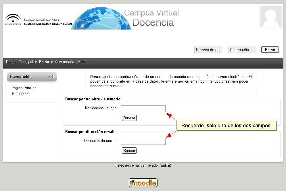 Y aquí es importante dar sólo uno de los dos campos. Bien el usuario, bien el correo electrónico.