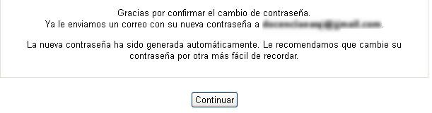 Ese enlace creará una nueva contraseña y le mostrará este mensaje de confirmación