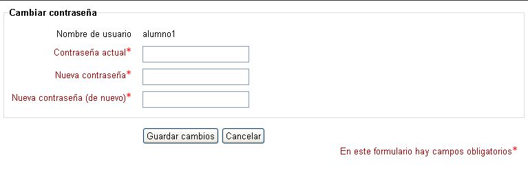 Contraseña actual se refiere a la que hemos recibido por email. En los dos espacios siguientes pondremos la que queremos utilizar definitivamente.