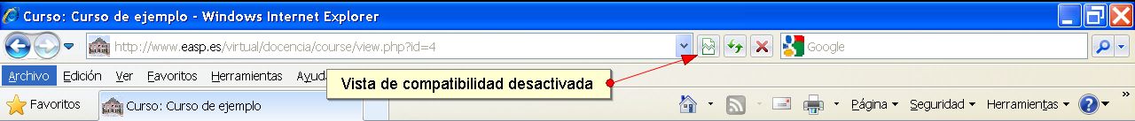 Esto puede resolverse en las versiones 8 o superiores activando la "Vista de compatibilidad". En la siguiente imagen mostramos el botón que tenemos que clickar para activarla.