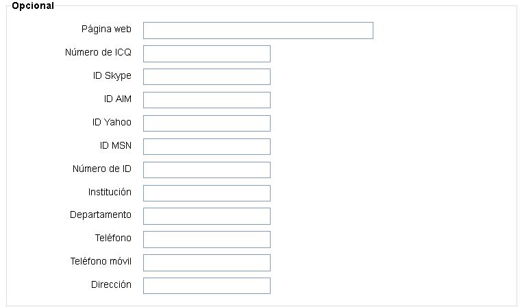 Aquí puede indicar datos de contacto adicionales. Recuerde que estos datos serán visibles para los participantes de todas las actividades en las que esté matriculado.