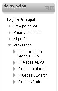 Como usuario identificado, la plataforma reconoce a qué cursos tiene acceso. En la columna izquierda, dentro del bloque "Navegación" haga click en el enlace "Mis cursos". Esto hará que se despliegue una lista con aquellos cursos en los que está matriculado. Ya sólo tiene que hacer click en aquel al que quiera acceder.