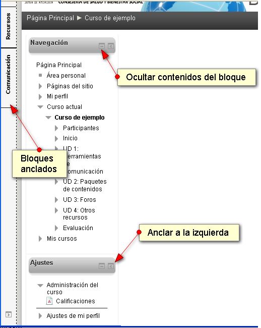 Para volver a colocar en su sitio un bloque que está anclado, sólo hay que pasar el ratón por su nombre, nos lo muestra, y hacemos click en el mismo icono.