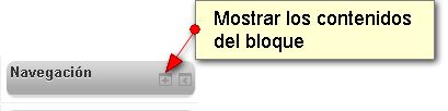 En primer lugar, un signo "-" o "+". Haciendo click en "-" se ocultan los contenidos del bloque y haciendo click en "+" se muestran de nuevo.