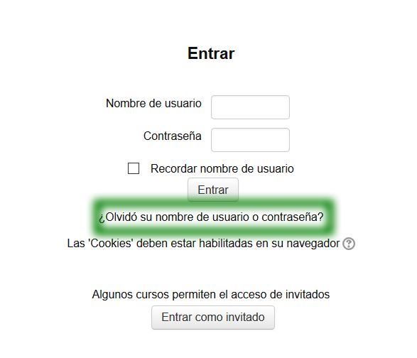 Si no recuerda usuario y/o contraseña, en la esquina superior derecha de la pantalla encontrará un enlace "Entrar".