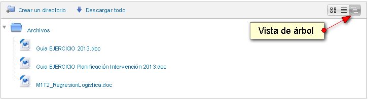 Por último, comentar que si tenemos muchos archivos podemos visualizarlos de distinta forma. A continuación mostramos las tres "Vistas" de archivos disponibles: