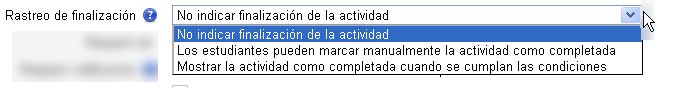 Si seleccionamos "Mostrar la actividad como completada cuando se cumplan las condiciones", se activarán las siguientes que sí son específicas para las tareas: