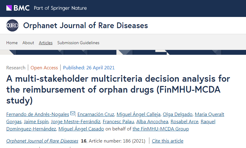 Patient access to orphan medicinal products (OMPs) is limited and varies between countries, reimbursement decisions on OMPs are complex, and there is a need for more transparent processes to know which criteria should be considered to inform these decisions. This study aimed to determine the most relevant criteria for the reimbursement of OMPs in Spain, from a multi-stakeholder perspective, and using multicriteria decision analysis (MCDA).