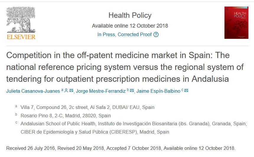Spain has a reference price system (RPS) for off-patent medicines since 1997. In addition, from 2012, Andalusia is running a series of tenders for procuring off-patent medicines dispensed by community pharmacies, for those medicines included in the system of homogenous clusters within the national reference price system. Such tenders offer additional savings to the regional payer – in the form of rebates (“economic improvements”) from companies winning the tender. This paper estimates that the regional savings were between €43 M to €54 M over the period of study (April – September 2015). The paper also estimates that Spain could have made between 14 and 17 times higher savings than the national reference pricing system savings, had the Andalusian-type tender been implemented at national level over the same period of study. Based on our analysis, we have four remarks. First, the national RPS in Spain is not generating enough price competition for off-patent products dispensed in primary care pharmacies. Second, tenders can be a useful way to generate competition and financial savings in the off-patent market. Third, tenders can lead to discounts offered by medicine providers being redistributed from pharmacies to payers. And fourth, before implementing a national tender in Spain, several key issues need to be addressed to ensure it provides the right incentives both in the short and long run.