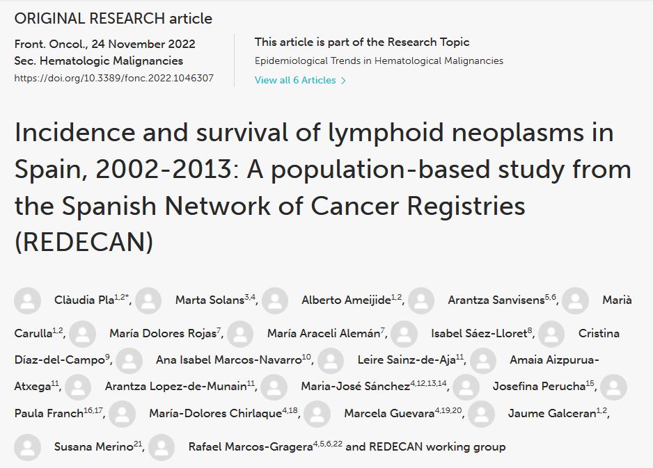Conclusions: This study presents the first complete and extensive population-based analysis of LNs incidence and survival in Spain. These population-based data provide relevant information to better understand the epidemiology of LNs in Southern Europe and it features some useful points for public health authorities and clinicians. However, additional improvements regarding the registration of these hematological neoplasms can be implemented.