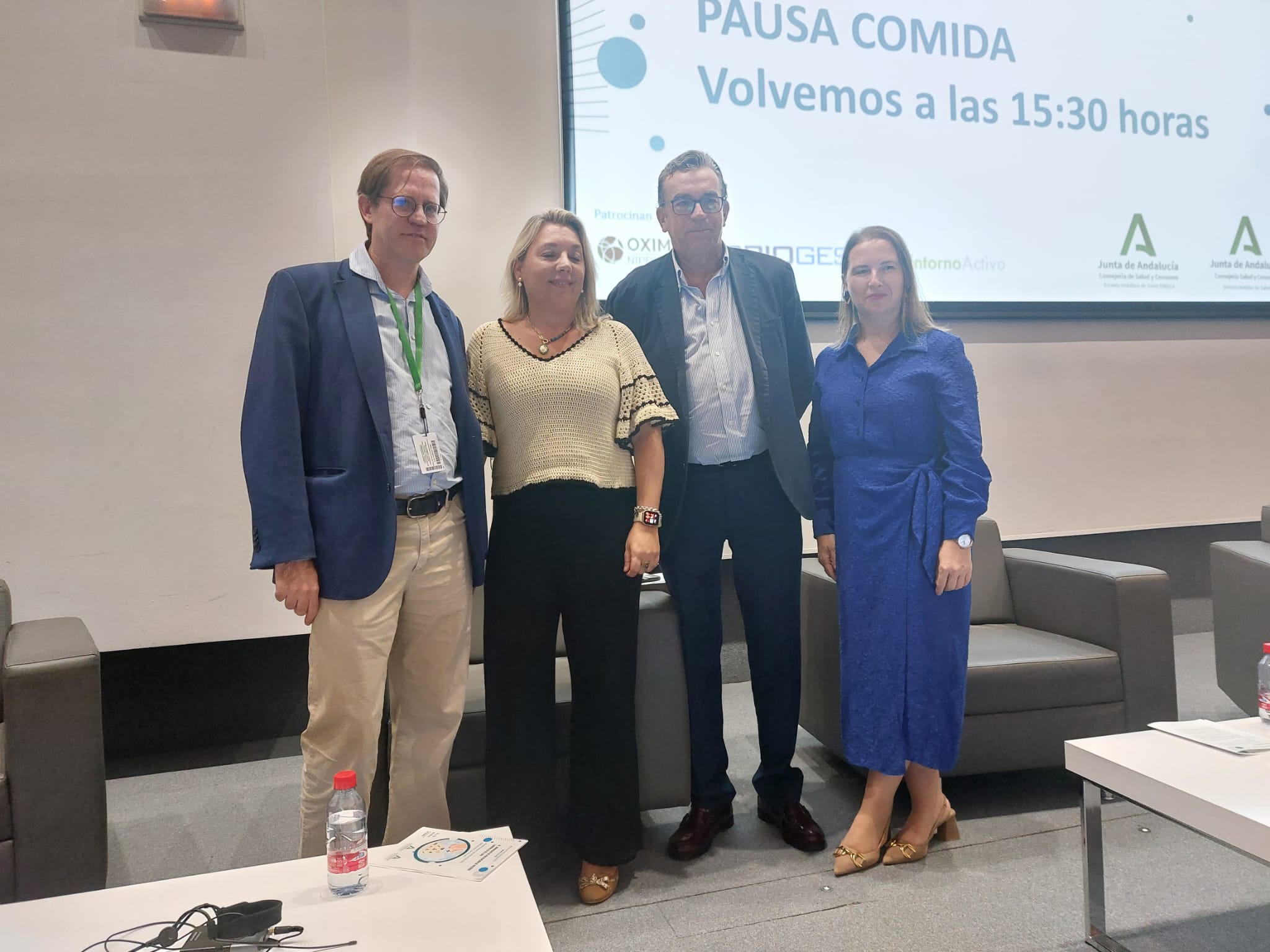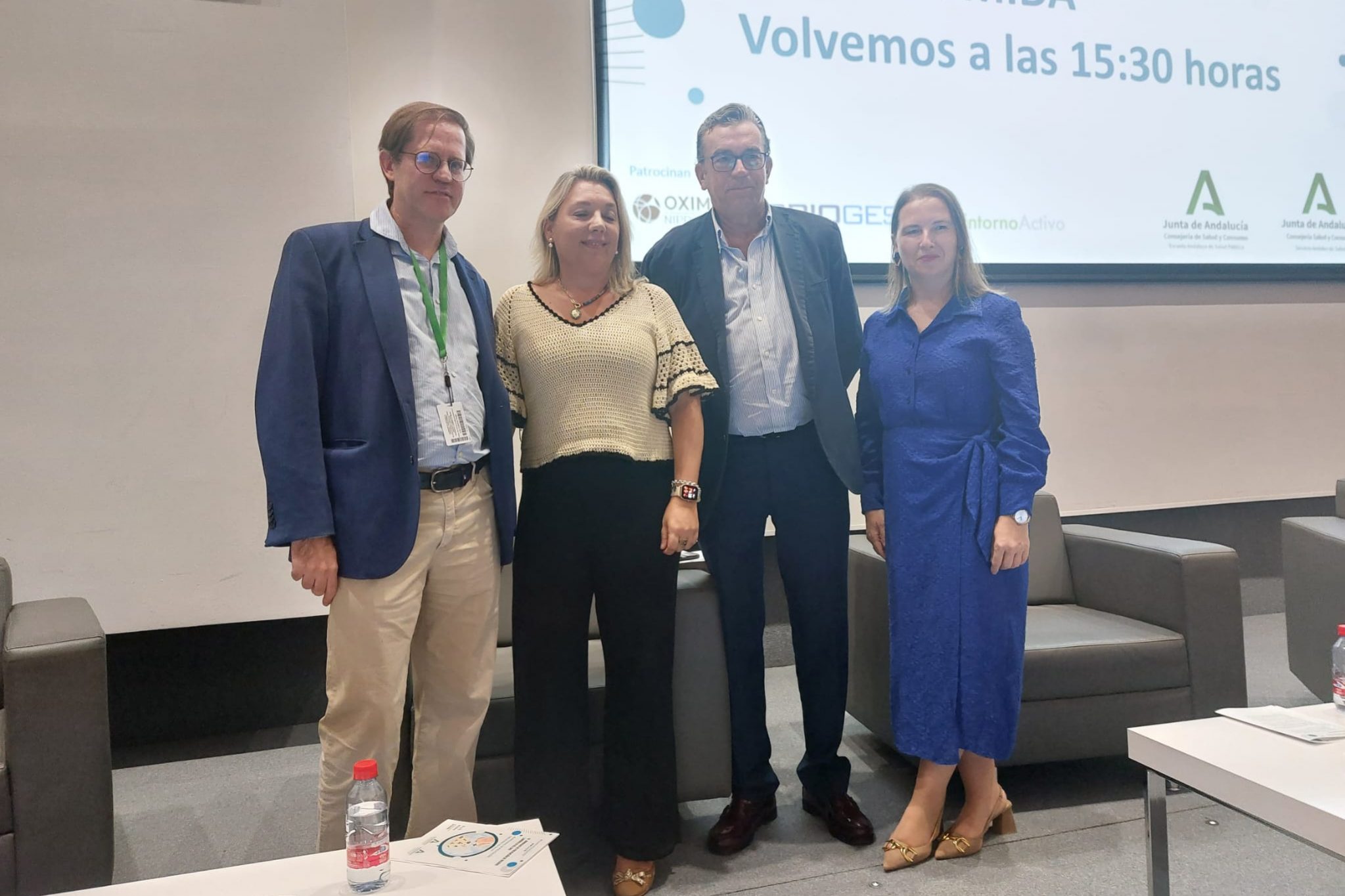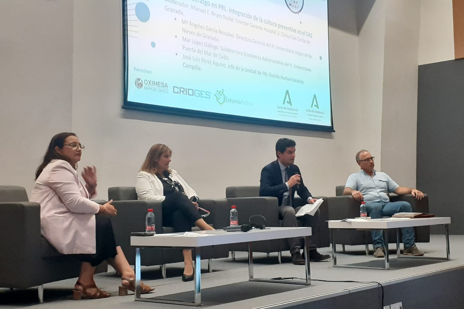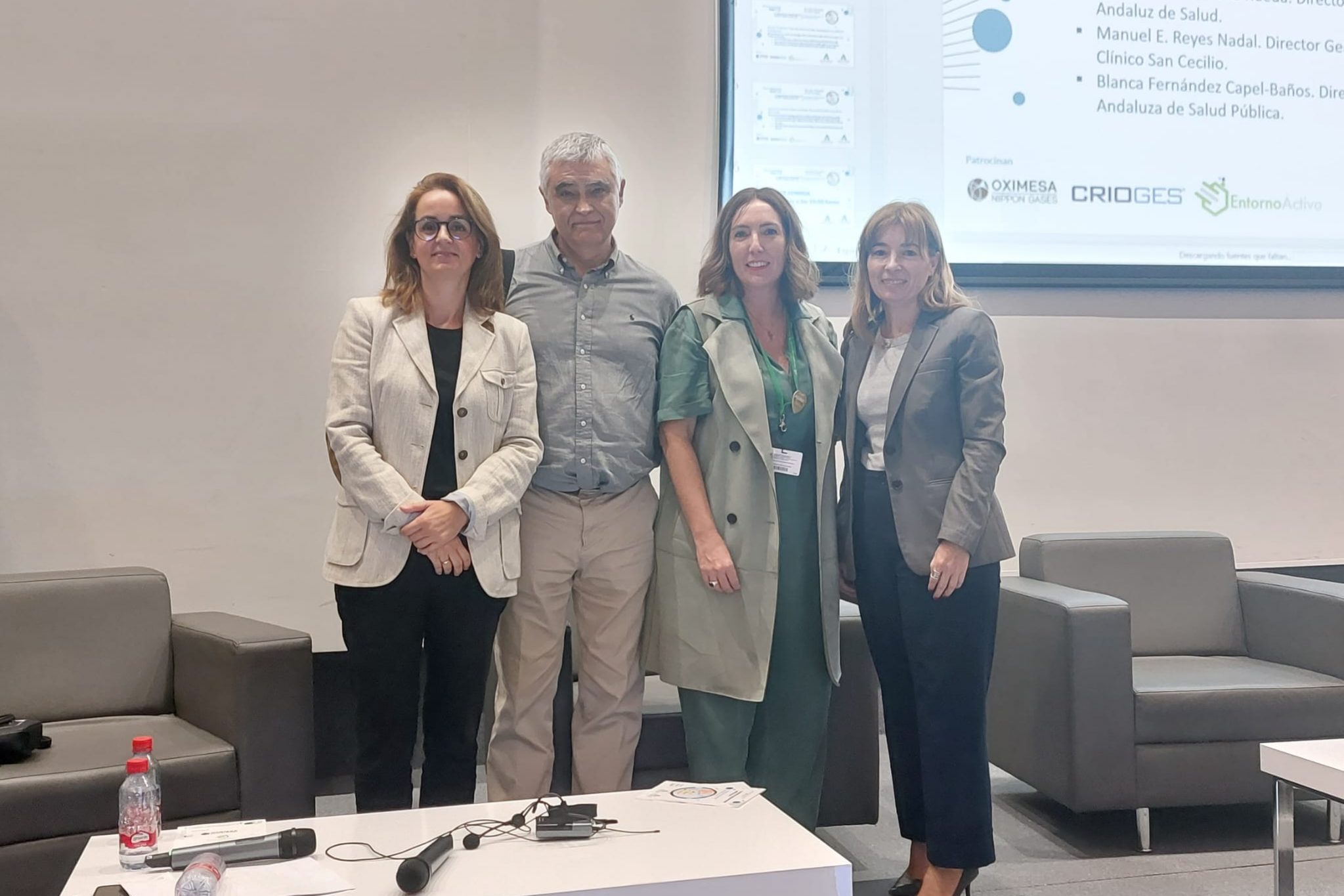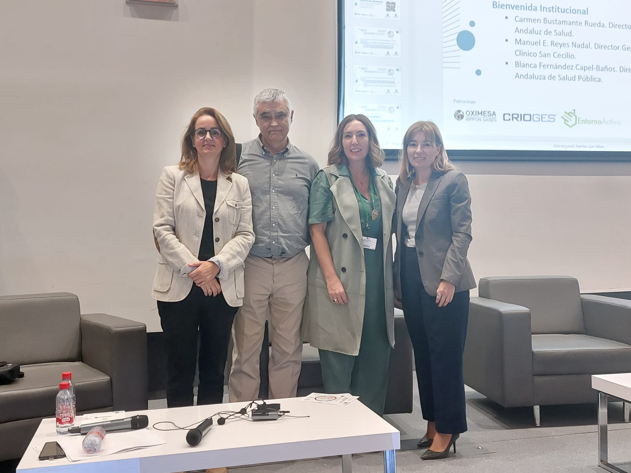 De izquierda a derecha Nuria Queraltó, responsable de PRSL del SAS, Manuel E. Reyes, director gerente del H.U. Clínico San Cecilio, Carmen Bustamante, directora general de Personal del SAS y Blanca Fernández-Capel, directora gerente de la EASP