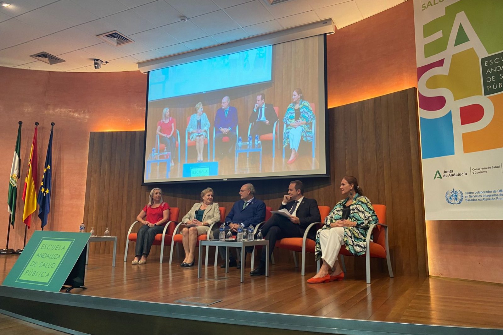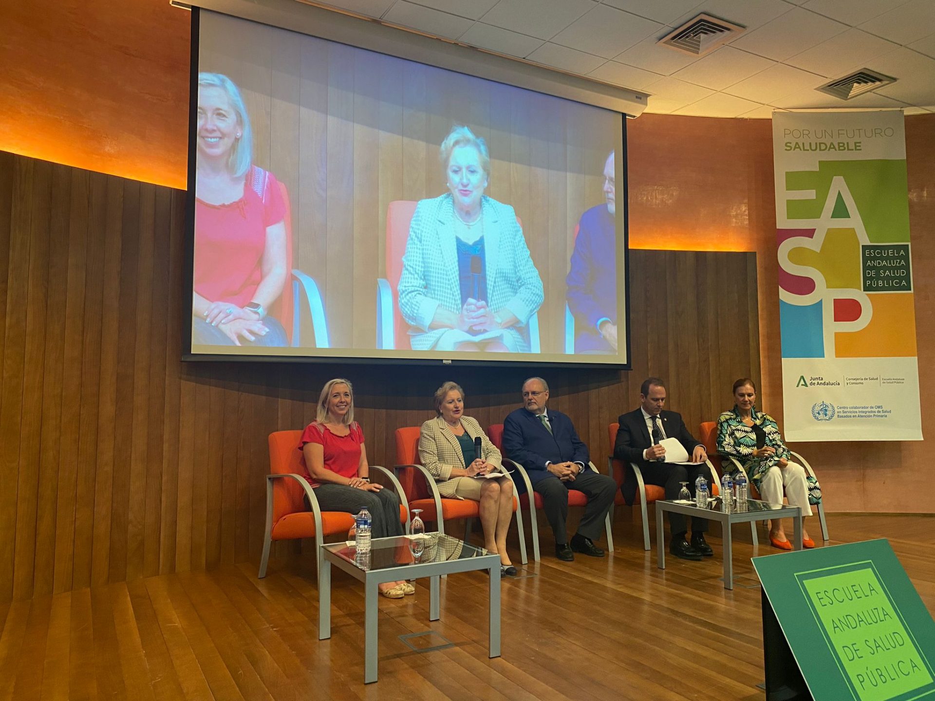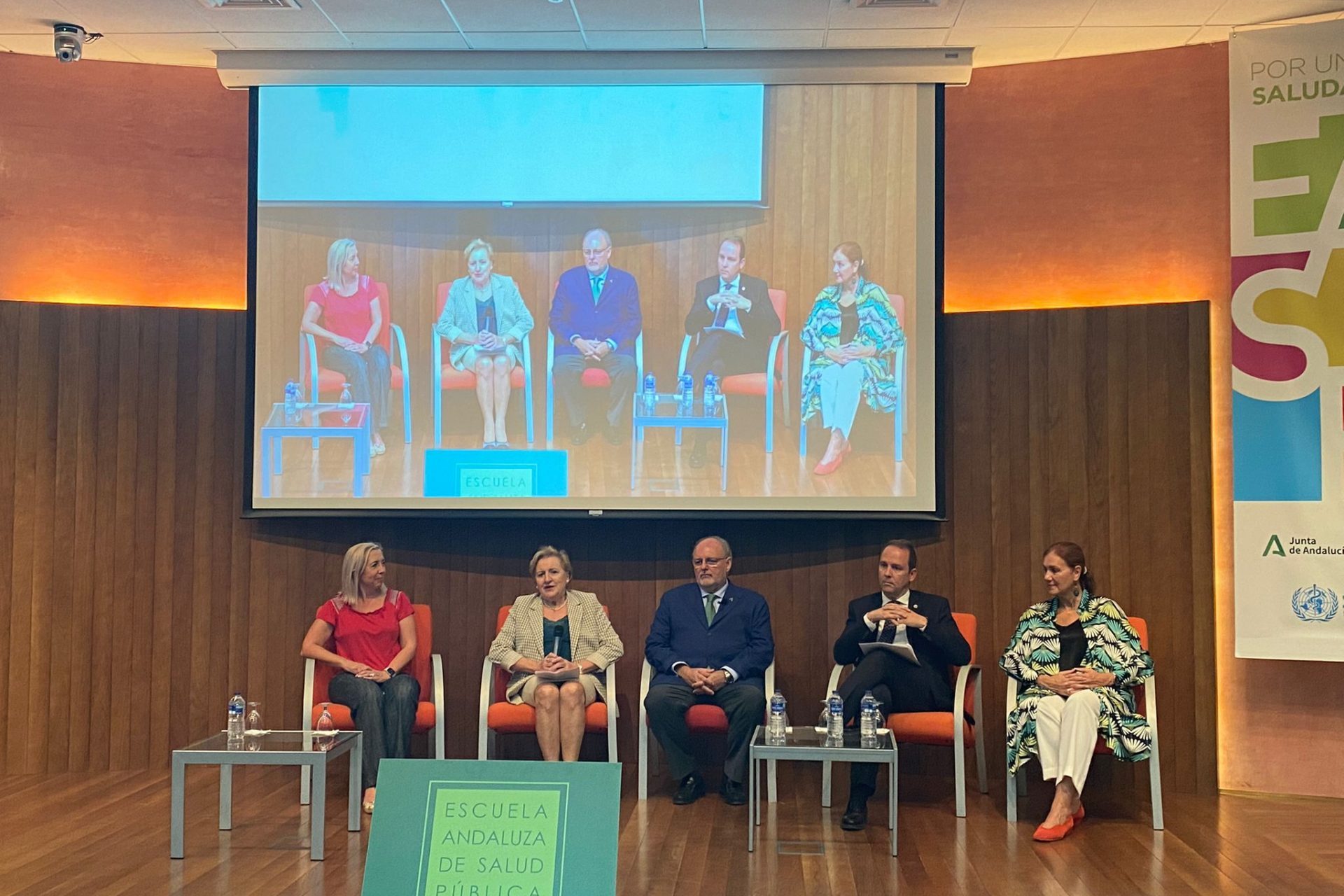 Este año el acto inaugural del Diploma se ha celebrado en la Escuela Andaluza de Salud Pública (EASP), con asistentes de manera virtual y presencial, y ha estado presidido por el viceconsejero de Salud y Consumo, Miguel Ángel Guzmán, acompañado por el rector de la Universidad Internacional de Andalucía UNIA, José Ignacio García; la directora gerente de la EASP, Blanca Fernández-Capel; la directora general de Humanización, Planificación, Coordinación y Cuidados del SAS, Inmaculada Vázquez, y la directora general de Personal del SAS, Carmen Bustamante.