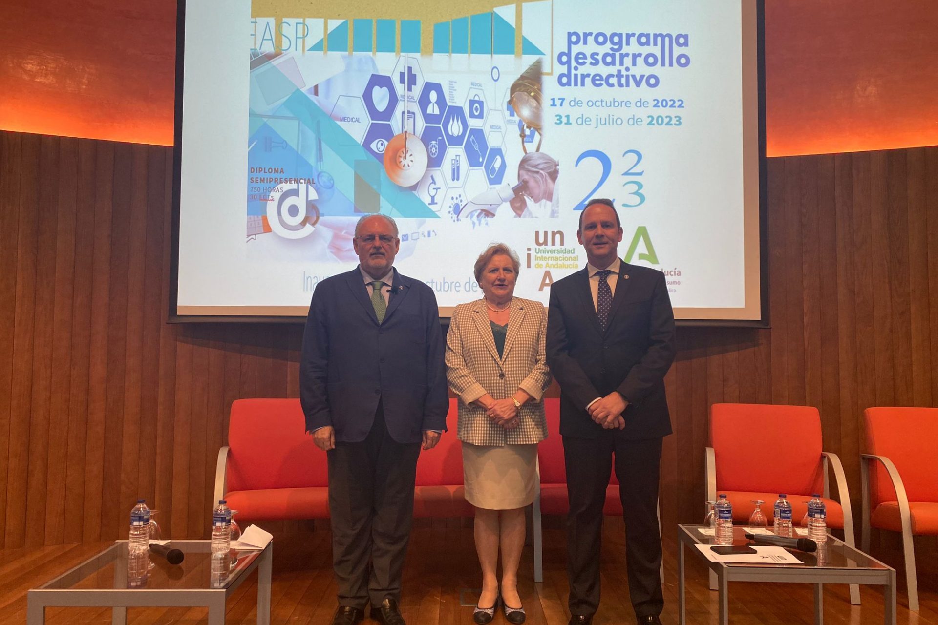El Diploma es título propio de la Universidad Internacional de Andalucía, impulsado por el Servicio Andaluz de Salud (SAS) para la profesionalización de los directivos en salud y realizado por la EASP. La dirección académica está a cargo de María José Cano, subdirectora de Formación, Selección y Desarrollo del SAS, Francisco Miralles, director médico de ASISA en Málaga y Pilar Navarro, profesora de la EASP.