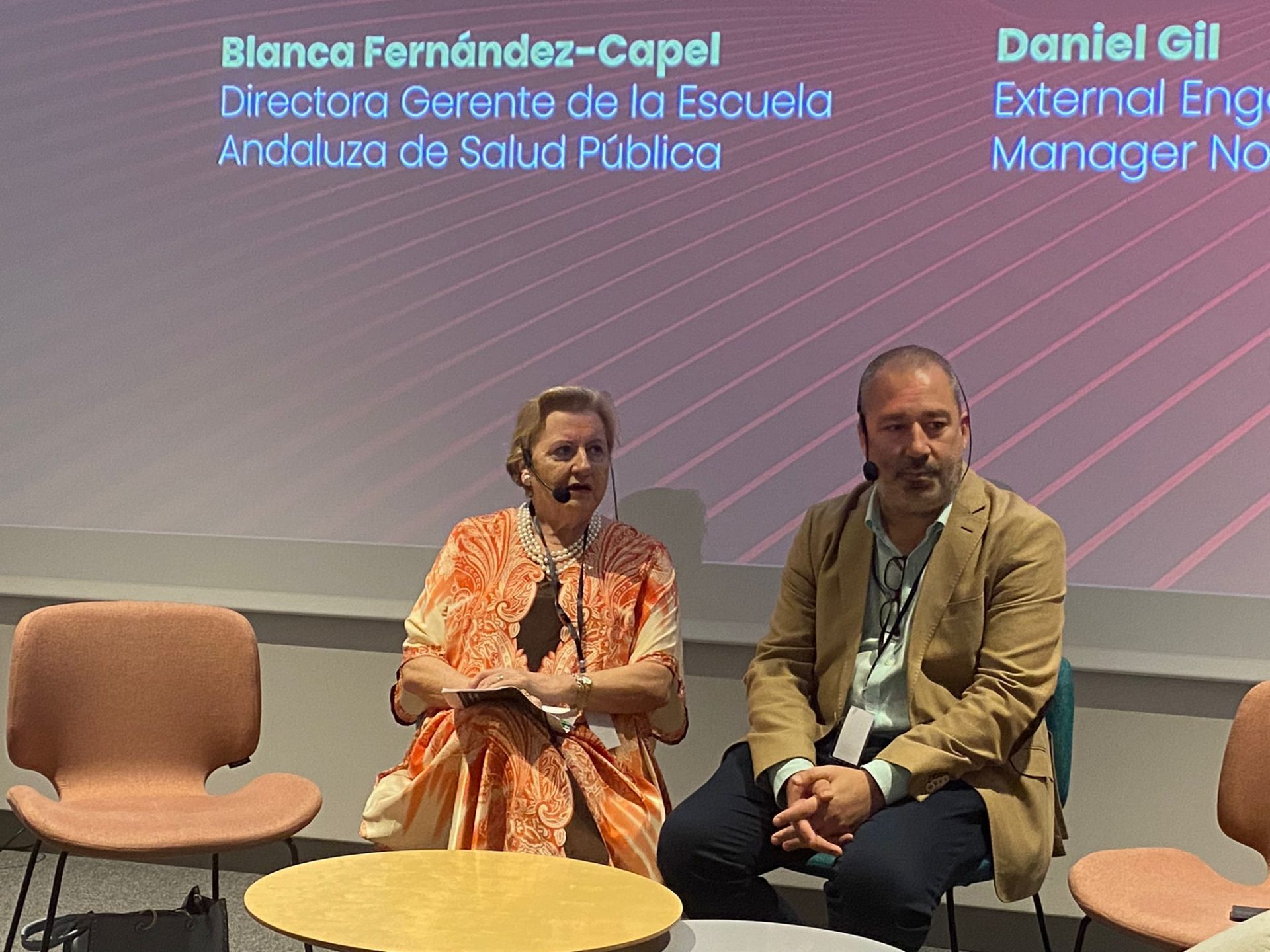 En la bienvenida institucional ha estado acompañada de Daniel Gil, external engagement manager de Novartis, institución coorganizadora del Foro.