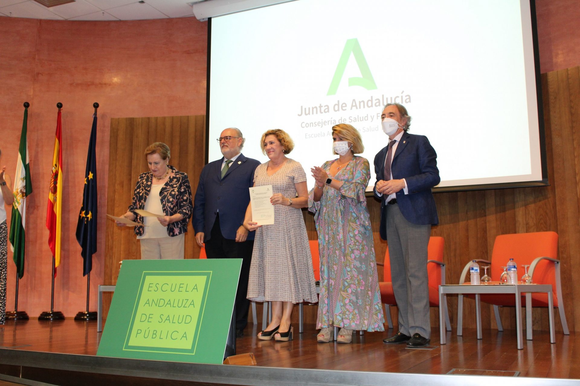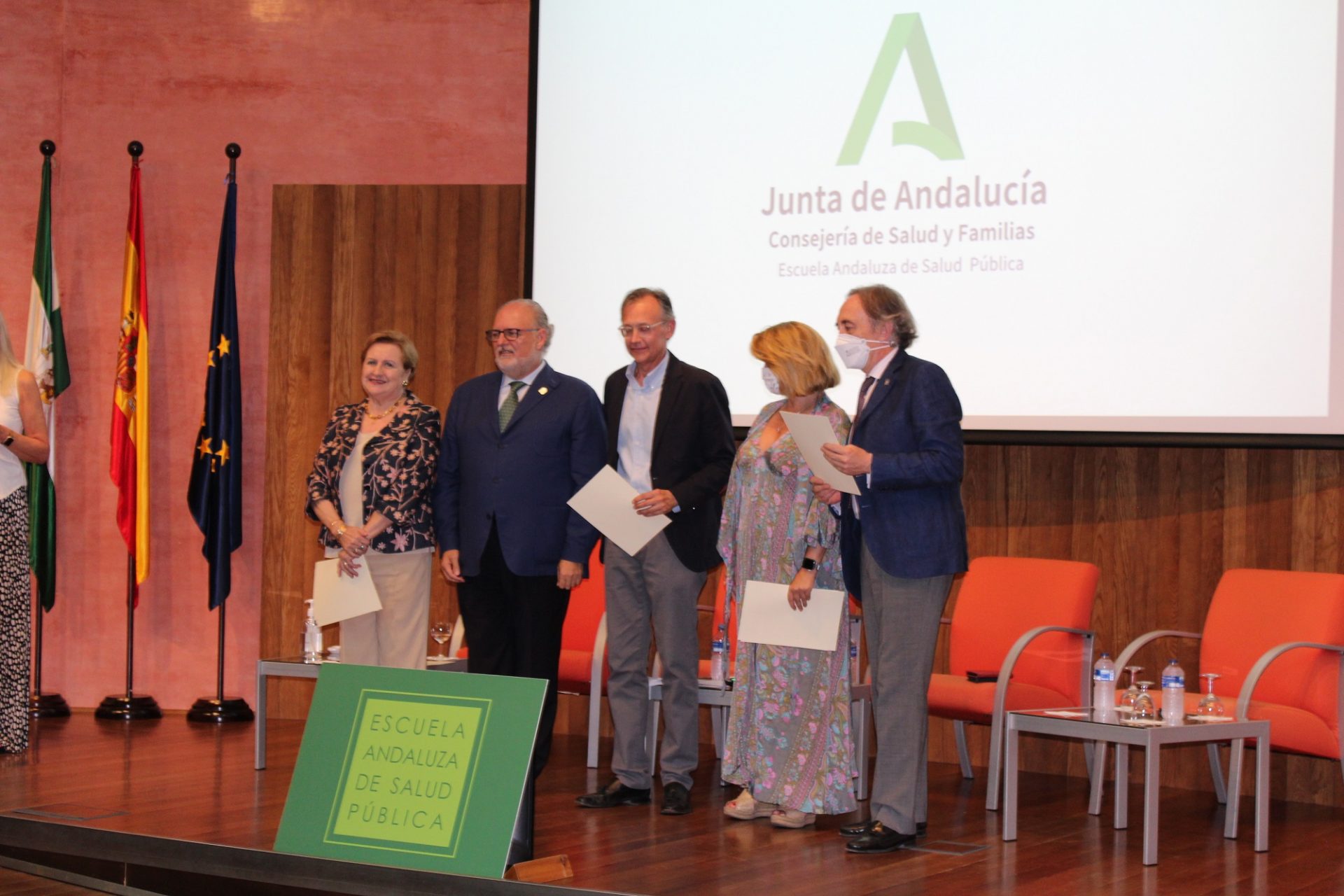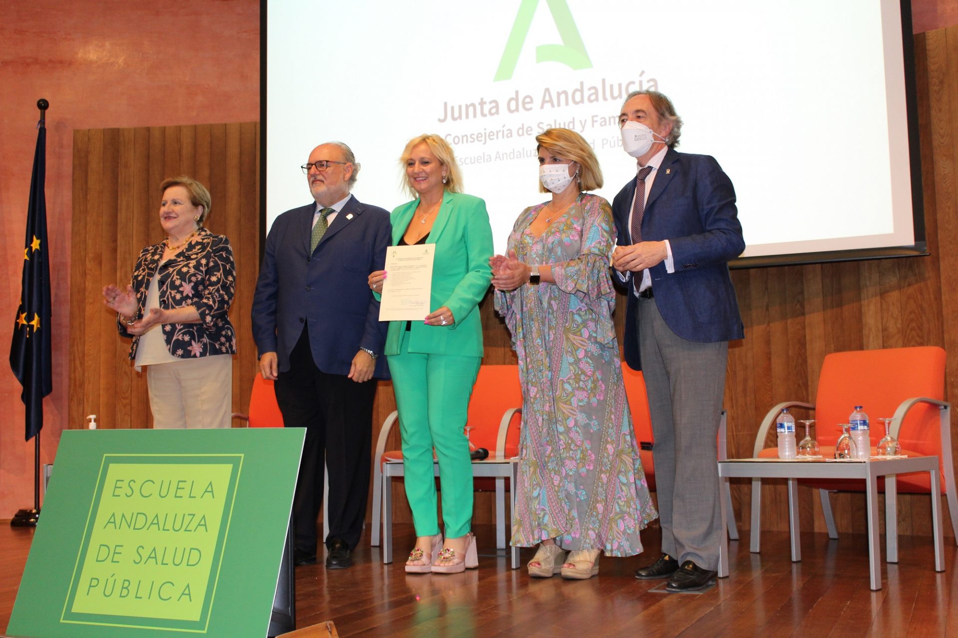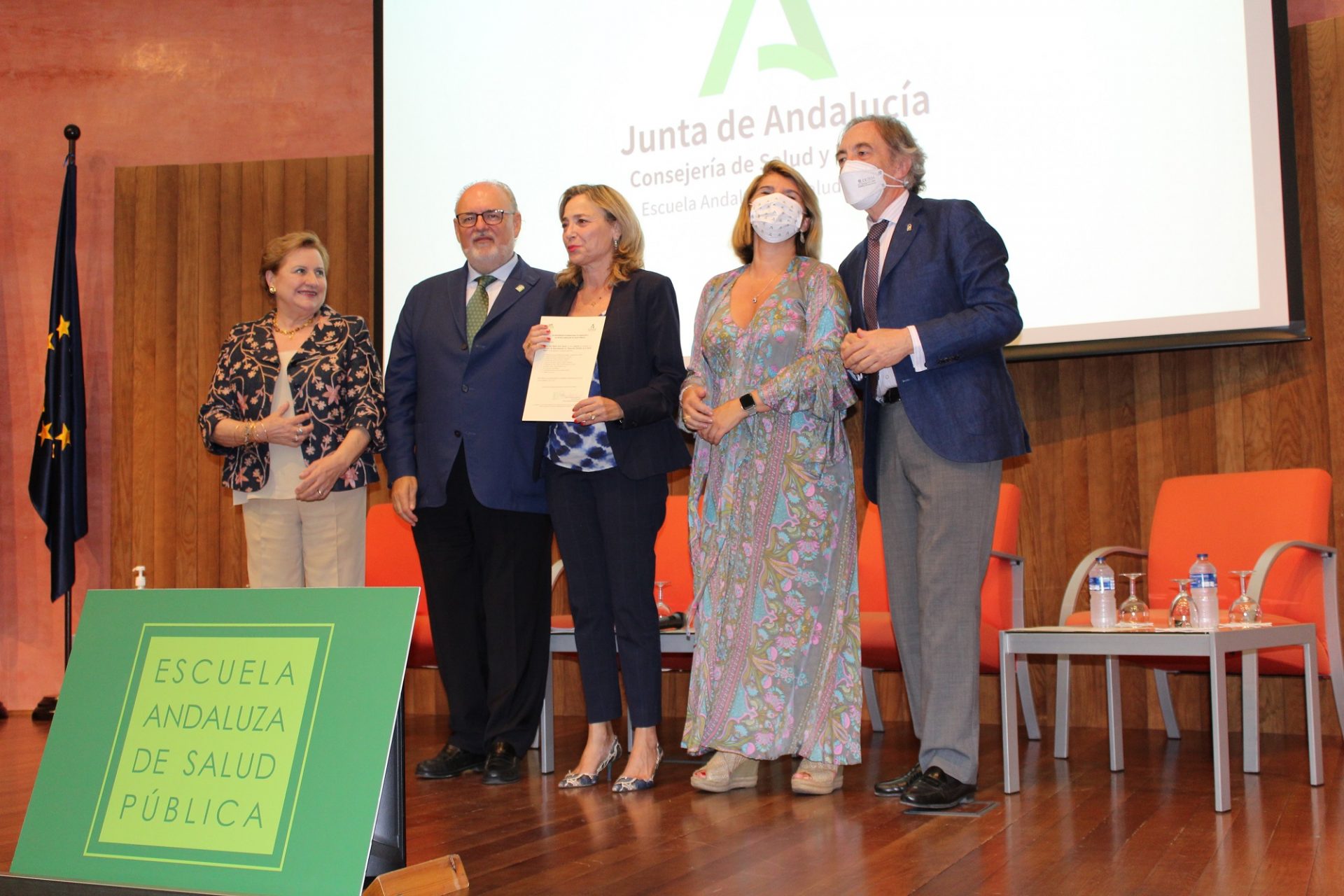 La clausura ha sido realizada por Jose Ignacio García Pérez, rector de la UNIA, el director gerente del SAS, Miguel Ángel Guzmán, y la directora gerente de la EASP, Blanca Fernández-Capel, que han estado acompañados del Director General de Asistencia Sanitaria y Resultados en Salud del SAS, Diego Vargas Ortega, el delegado del Gobierno de la Junta de Andalucía en Granada, Indalecio Sánchez-Montesinos, y los coordinadores del diploma, María José Cano, subdirectora de Formación, Selección y Desarrollo Profesional del SAS, Francisco Miralles, jefe del Servicio de Medicina Interna del hospital Vithas Xanit Internacional y la profesora de la EASP Pilar Navarro.