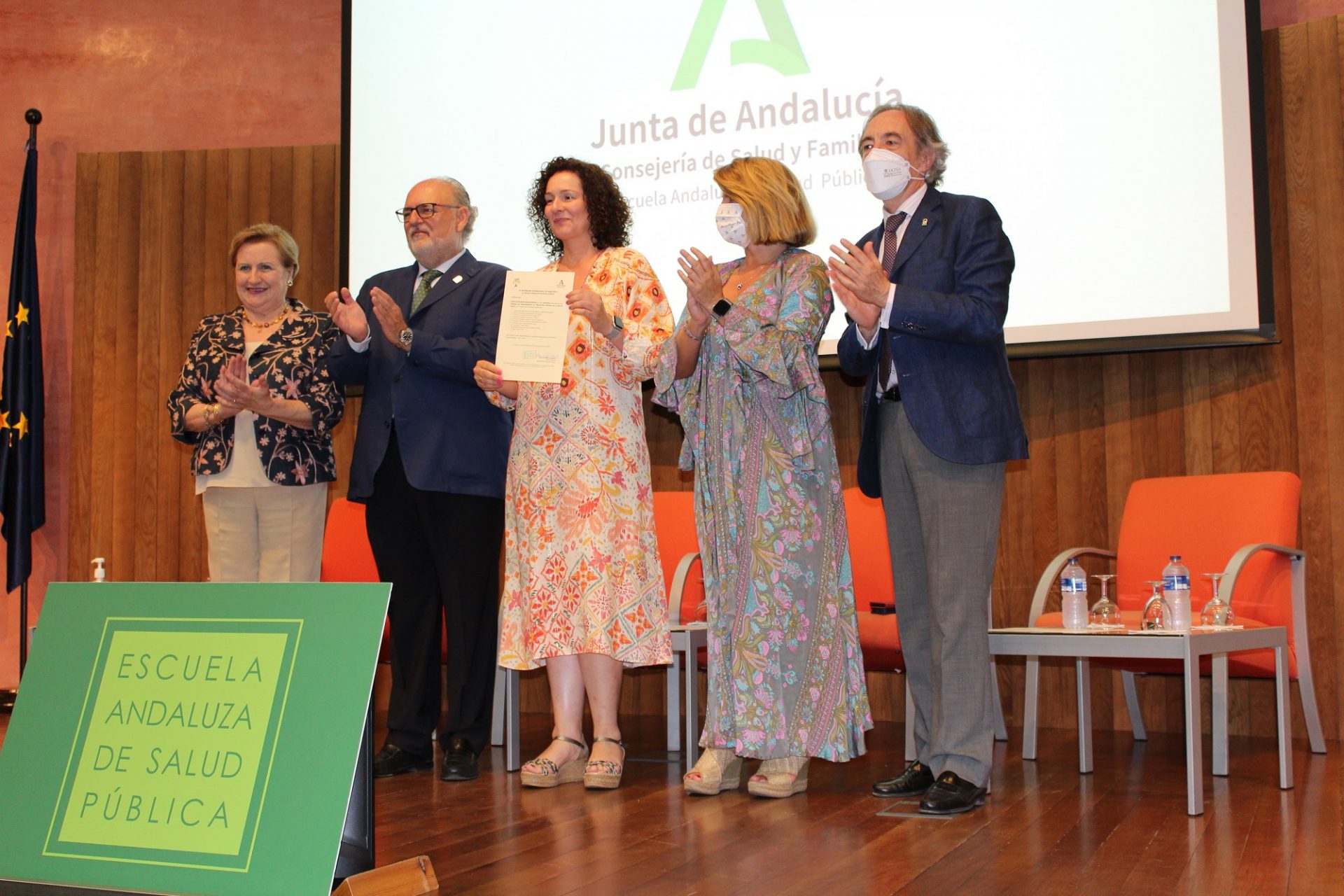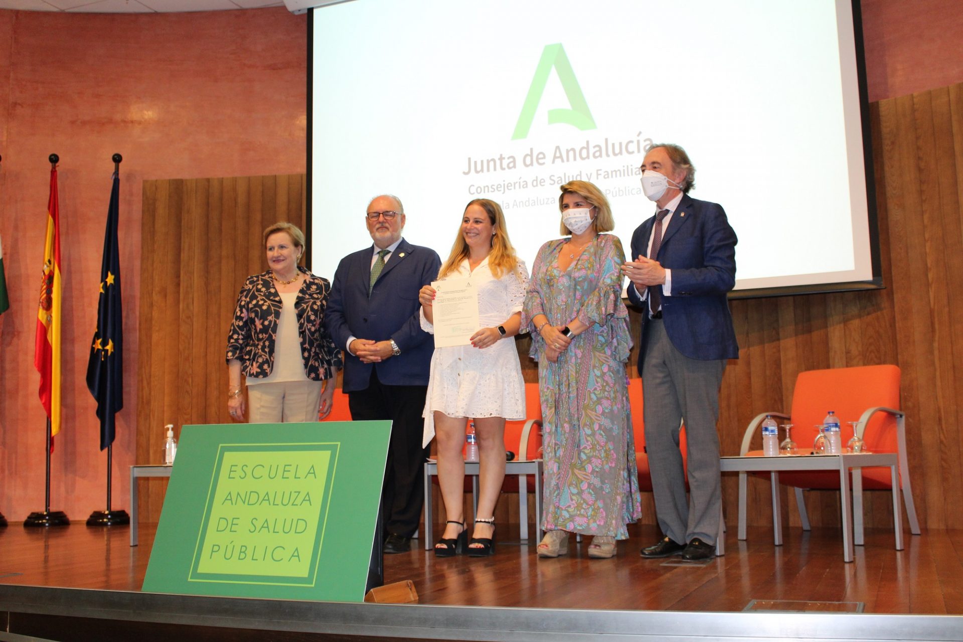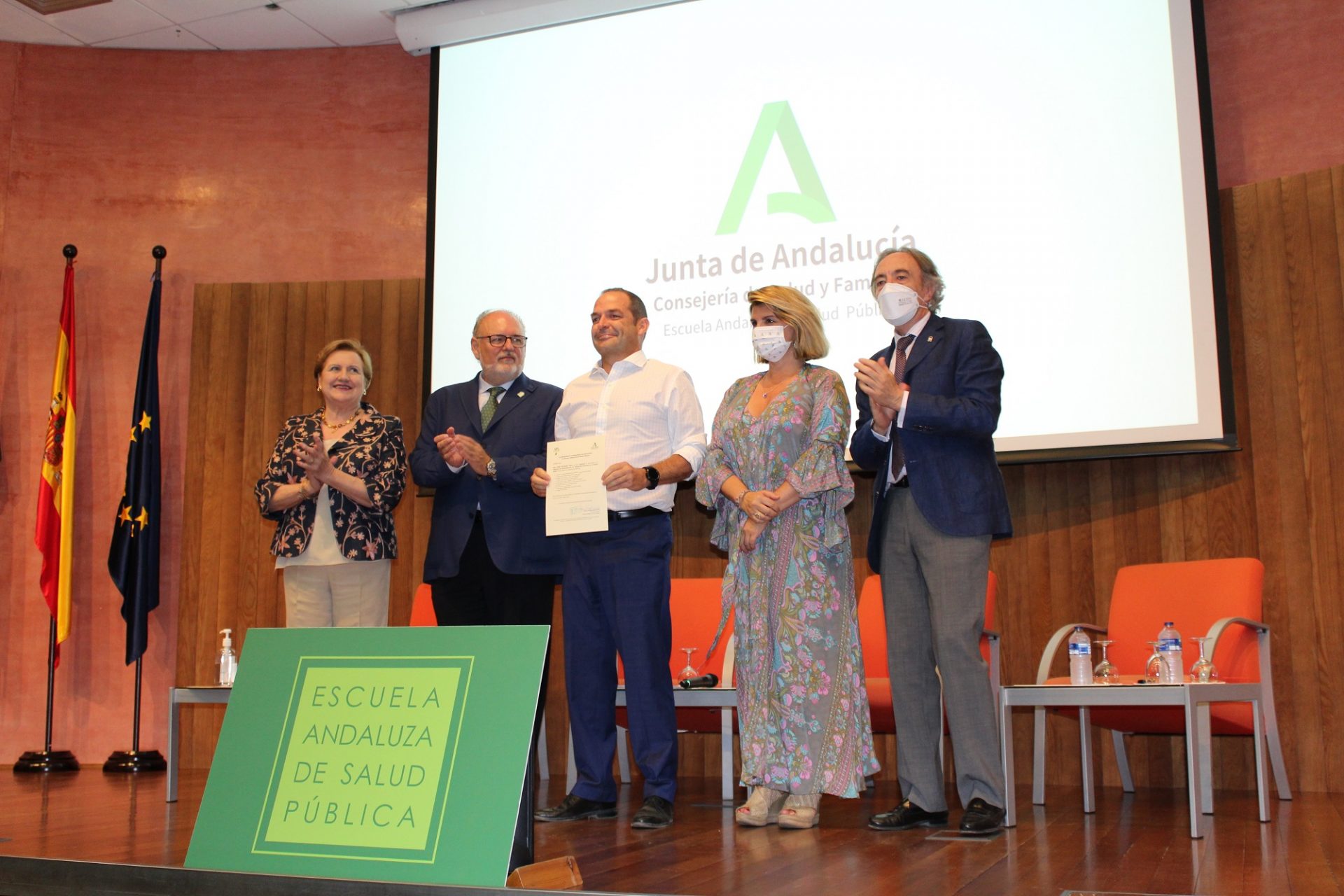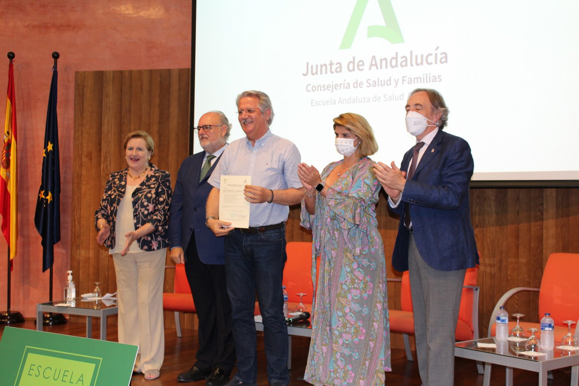 La clausura ha sido realizada por Jose Ignacio García Pérez, rector de la UNIA, el director gerente del SAS, Miguel Ángel Guzmán, y la directora gerente de la EASP, Blanca Fernández-Capel, que han estado acompañados del Director General de Asistencia Sanitaria y Resultados en Salud del SAS, Diego Vargas Ortega, el delegado del Gobierno de la Junta de Andalucía en Granada, Indalecio Sánchez-Montesinos, y los coordinadores del diploma, María José Cano, subdirectora de Formación, Selección y Desarrollo Profesional del SAS, Francisco Miralles, jefe del Servicio de Medicina Interna del hospital Vithas Xanit Internacional y la profesora de la EASP Pilar Navarro.