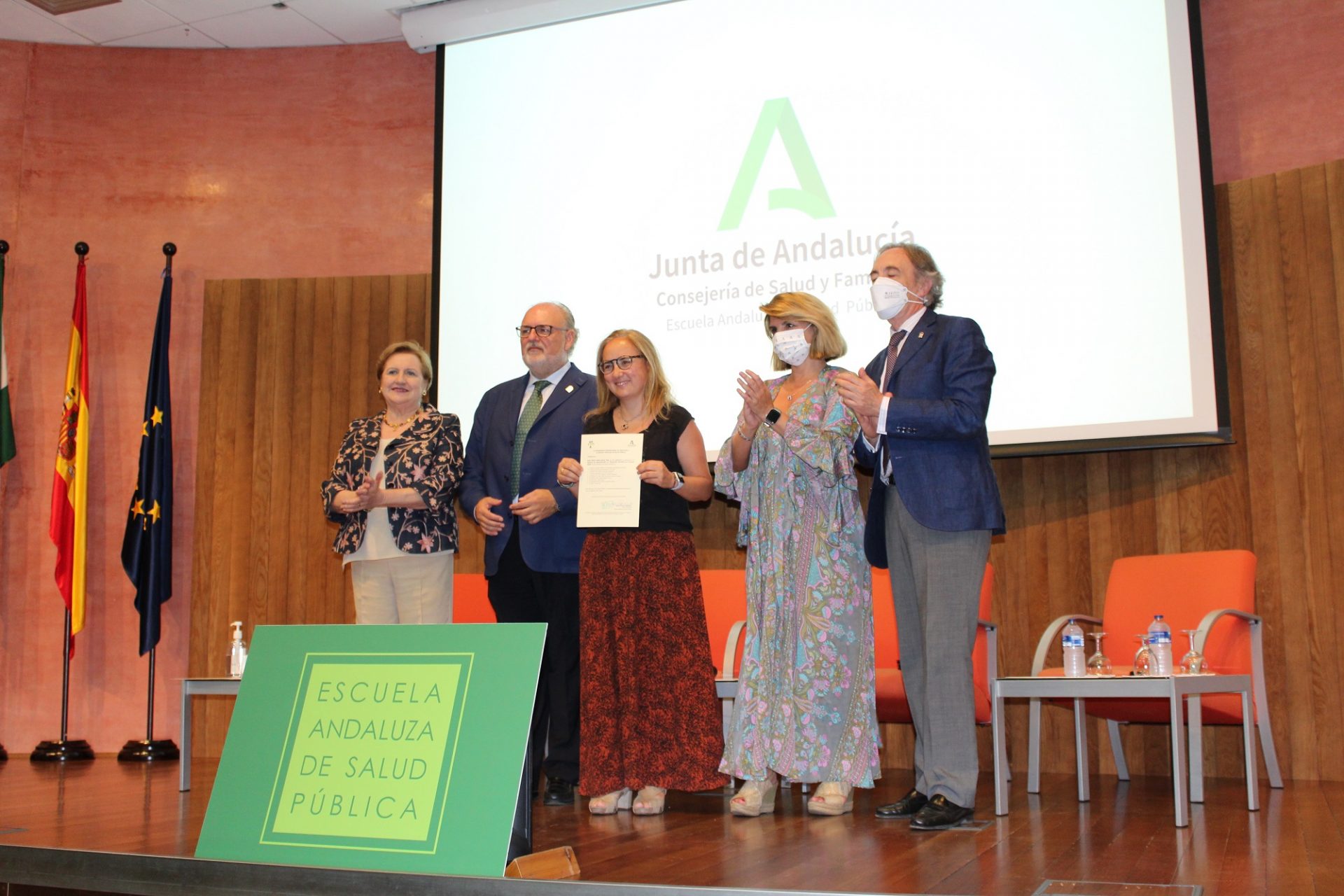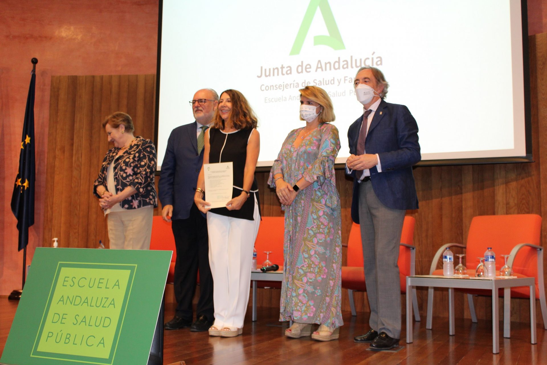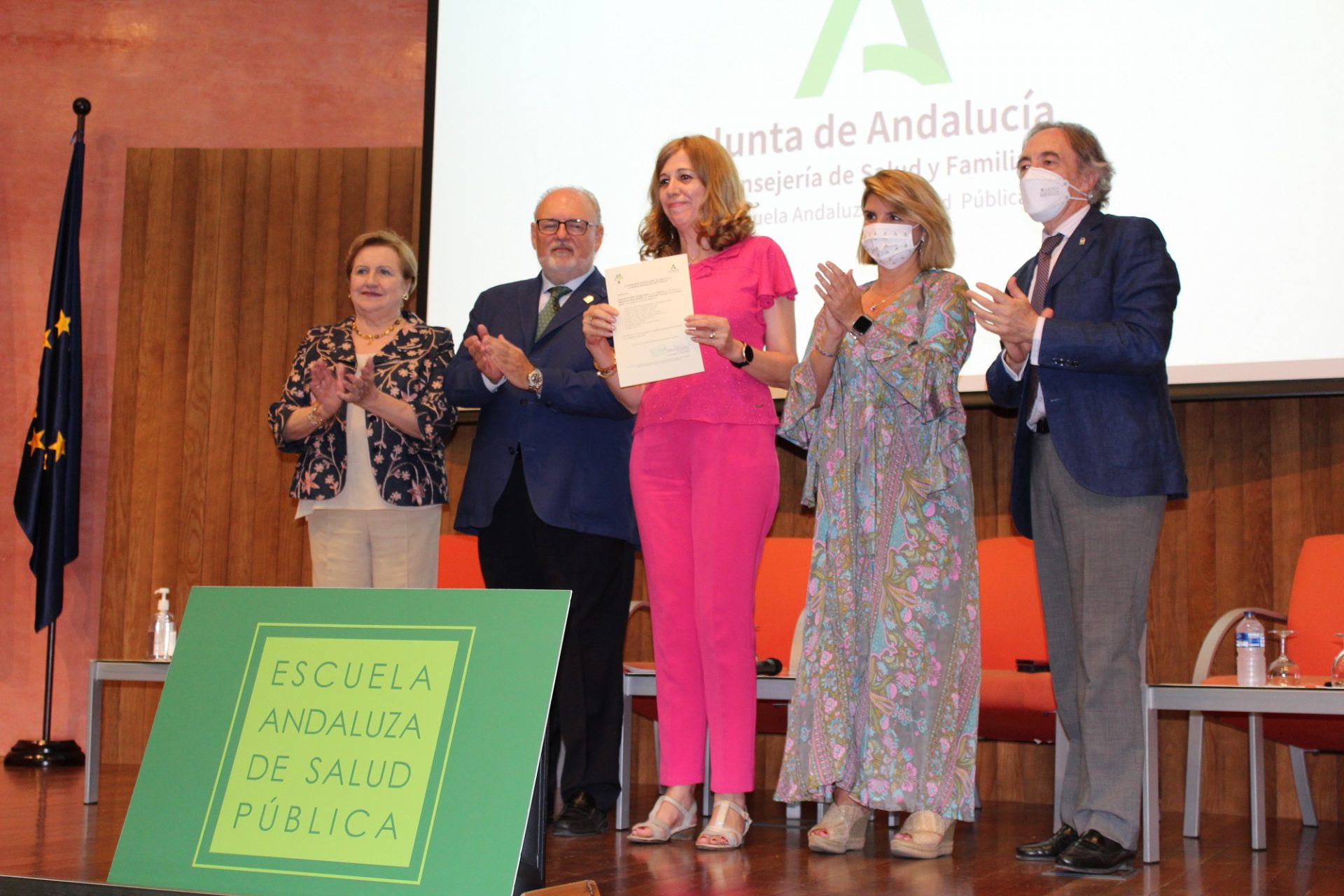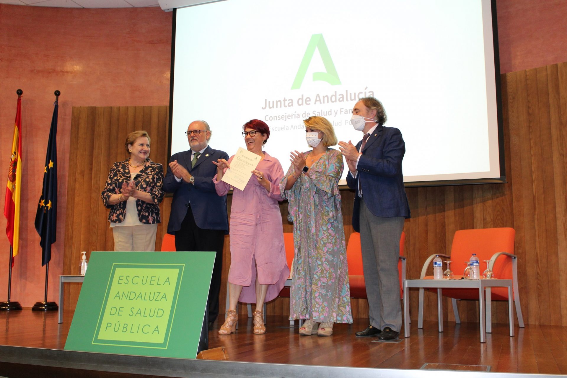 La clausura ha sido realizada por Jose Ignacio García Pérez, rector de la UNIA, el director gerente del SAS, Miguel Ángel Guzmán, y la directora gerente de la EASP, Blanca Fernández-Capel, que han estado acompañados del Director General de Asistencia Sanitaria y Resultados en Salud del SAS, Diego Vargas Ortega, el delegado del Gobierno de la Junta de Andalucía en Granada, Indalecio Sánchez-Montesinos, y los coordinadores del diploma, María José Cano, subdirectora de Formación, Selección y Desarrollo Profesional del SAS, Francisco Miralles, jefe del Servicio de Medicina Interna del hospital Vithas Xanit Internacional y la profesora de la EASP Pilar Navarro.