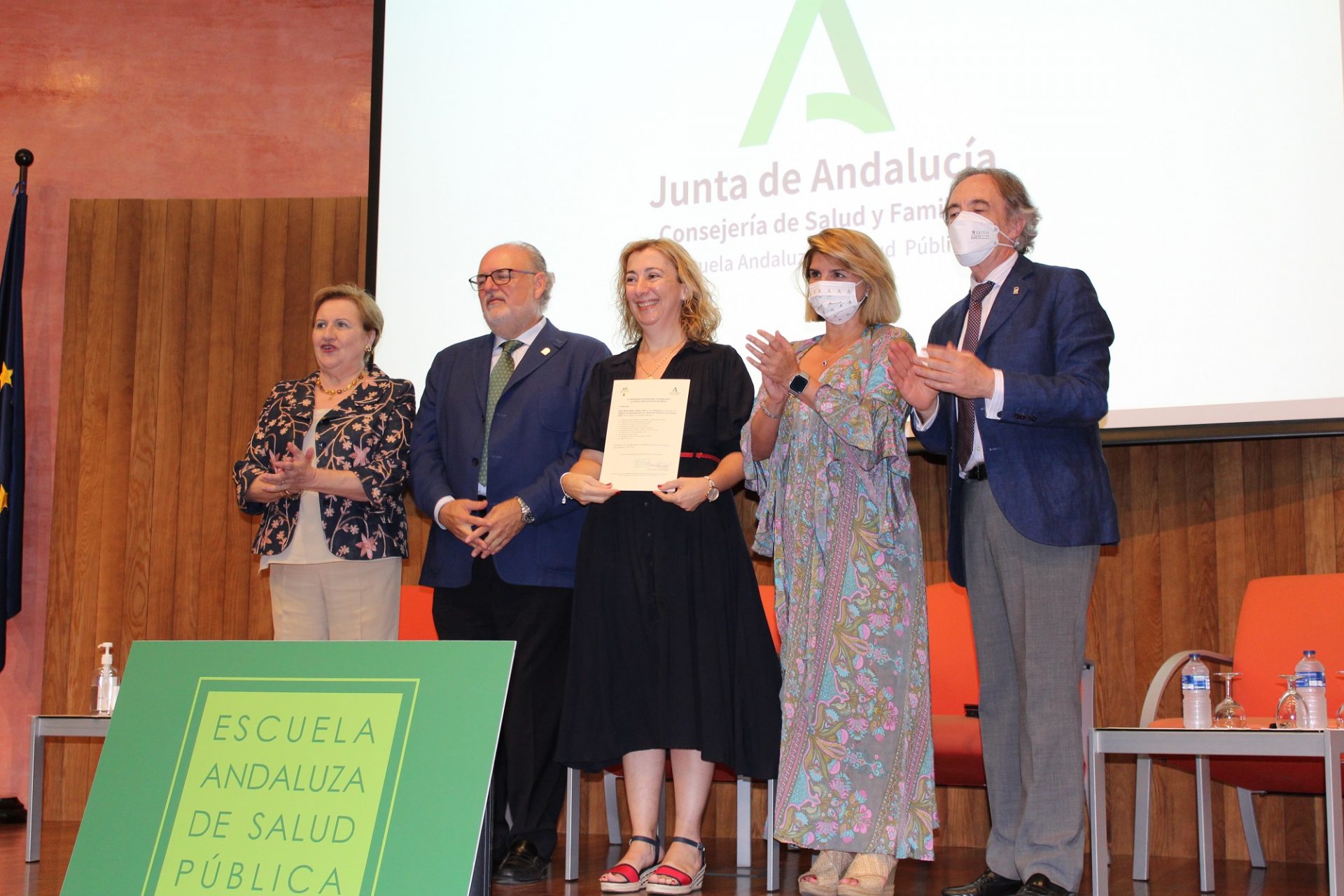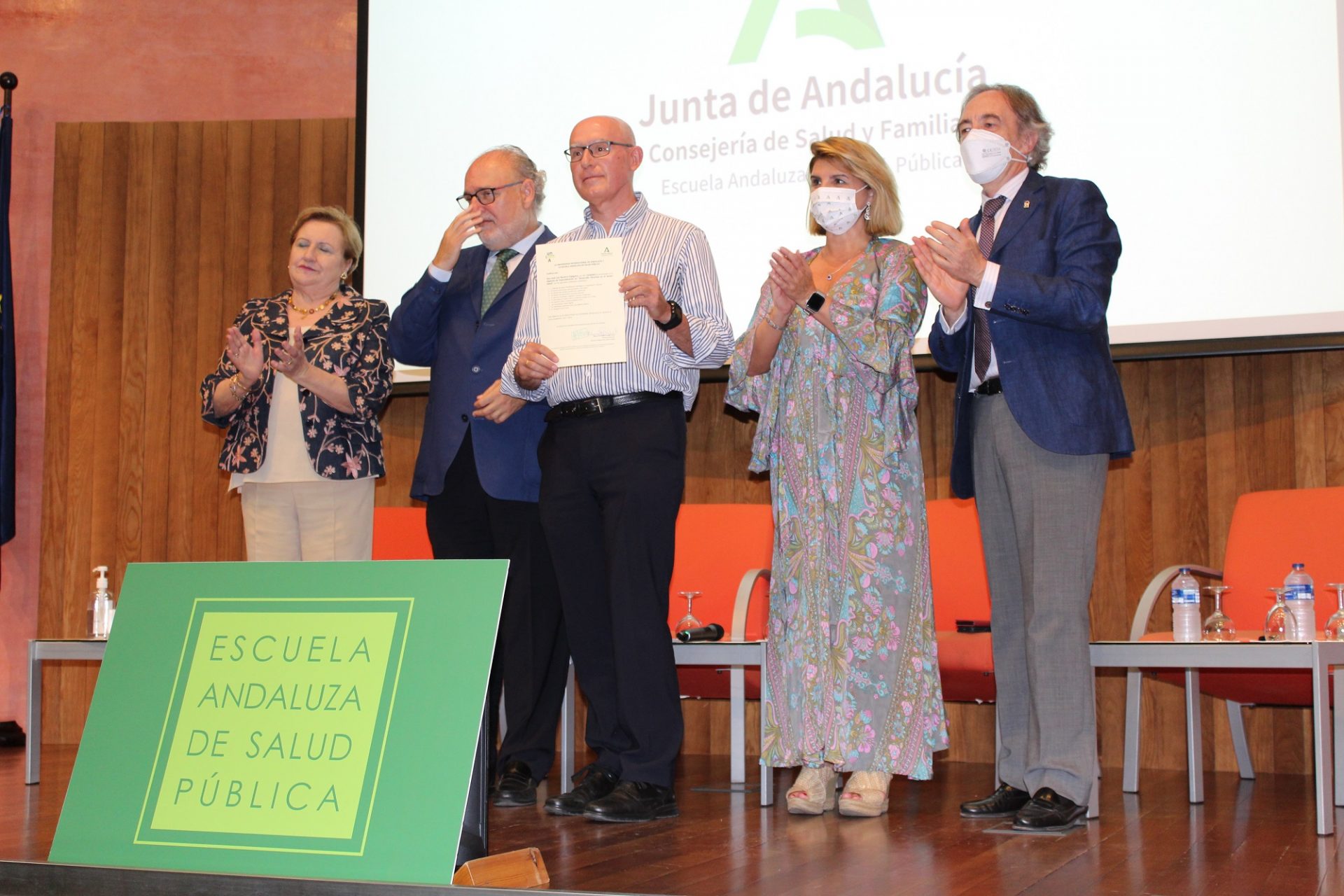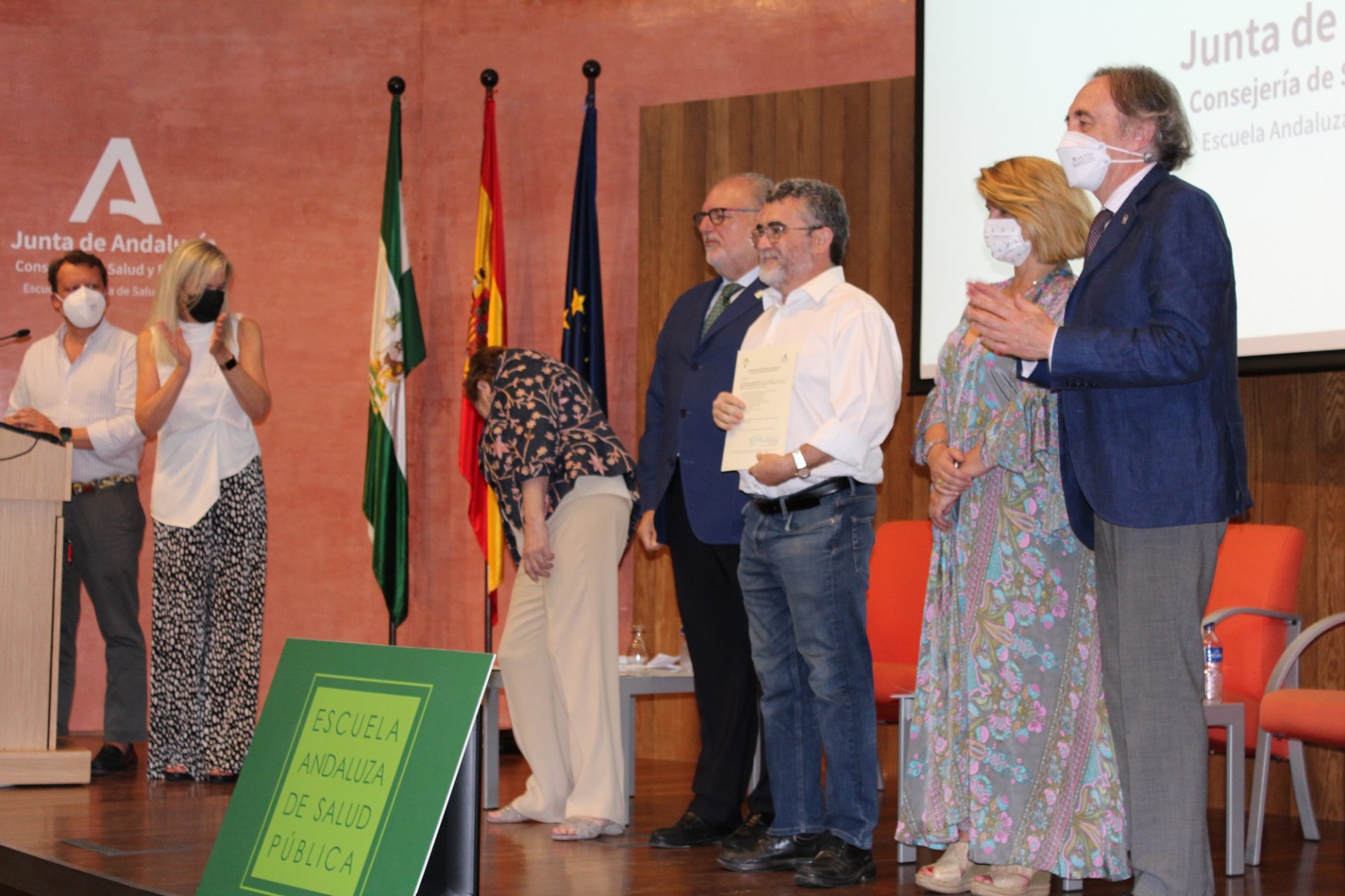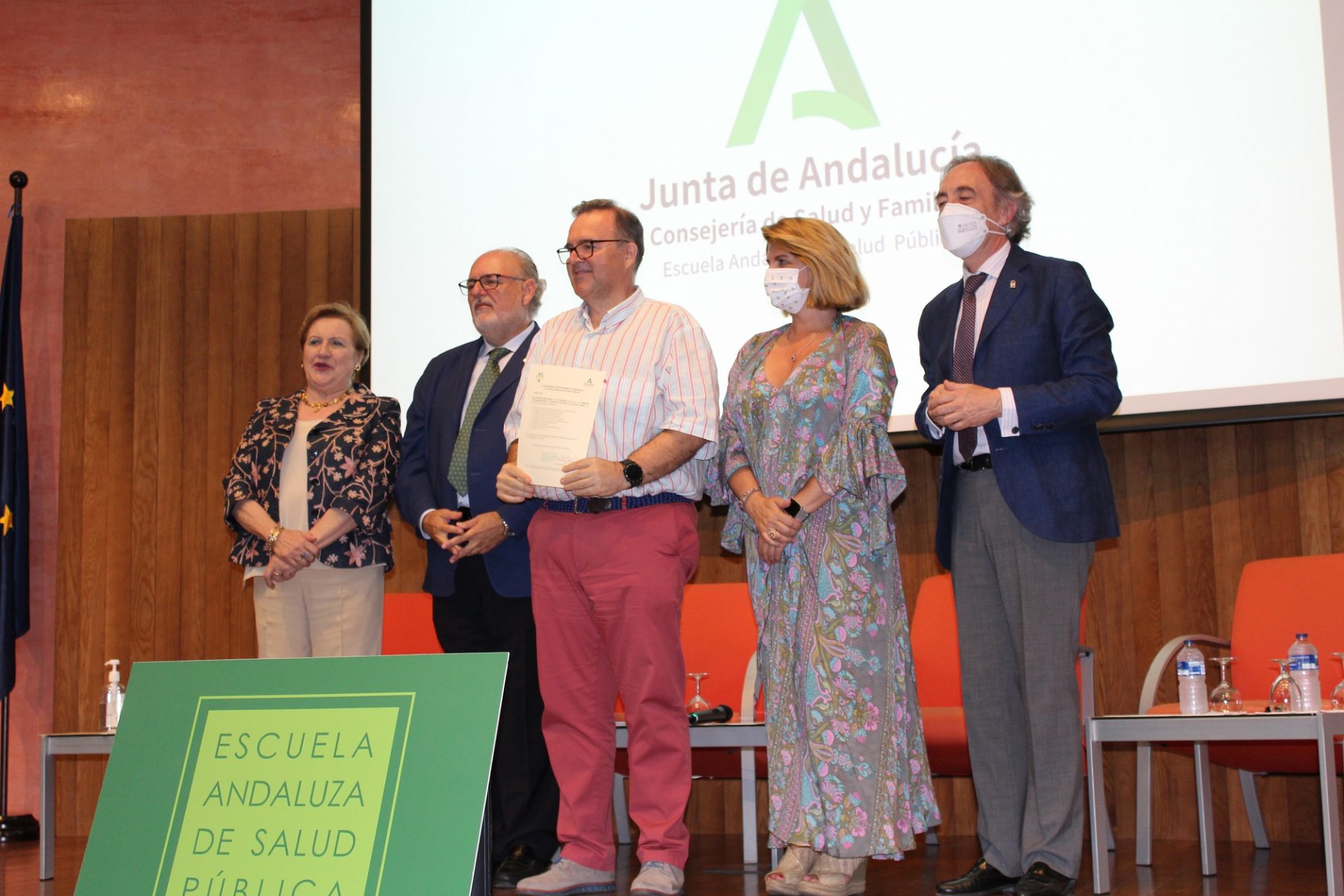 La clausura ha sido realizada por Jose Ignacio García Pérez, rector de la UNIA, el director gerente del SAS, Miguel Ángel Guzmán, y la directora gerente de la EASP, Blanca Fernández-Capel, que han estado acompañados del Director General de Asistencia Sanitaria y Resultados en Salud del SAS, Diego Vargas Ortega, el delegado del Gobierno de la Junta de Andalucía en Granada, Indalecio Sánchez-Montesinos, y los coordinadores del diploma, María José Cano, subdirectora de Formación, Selección y Desarrollo Profesional del SAS, Francisco Miralles, jefe del Servicio de Medicina Interna del hospital Vithas Xanit Internacional y la profesora de la EASP Pilar Navarro.