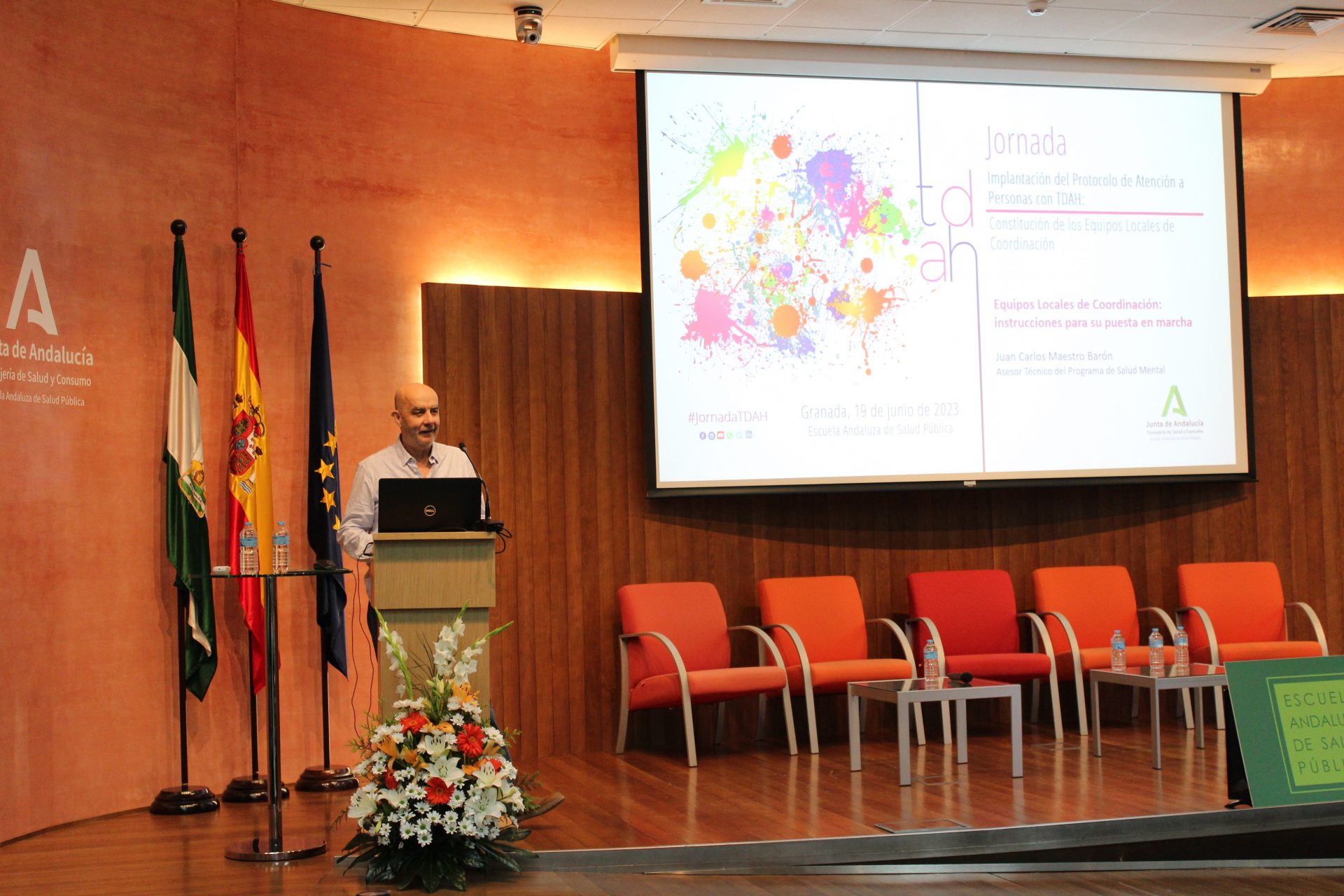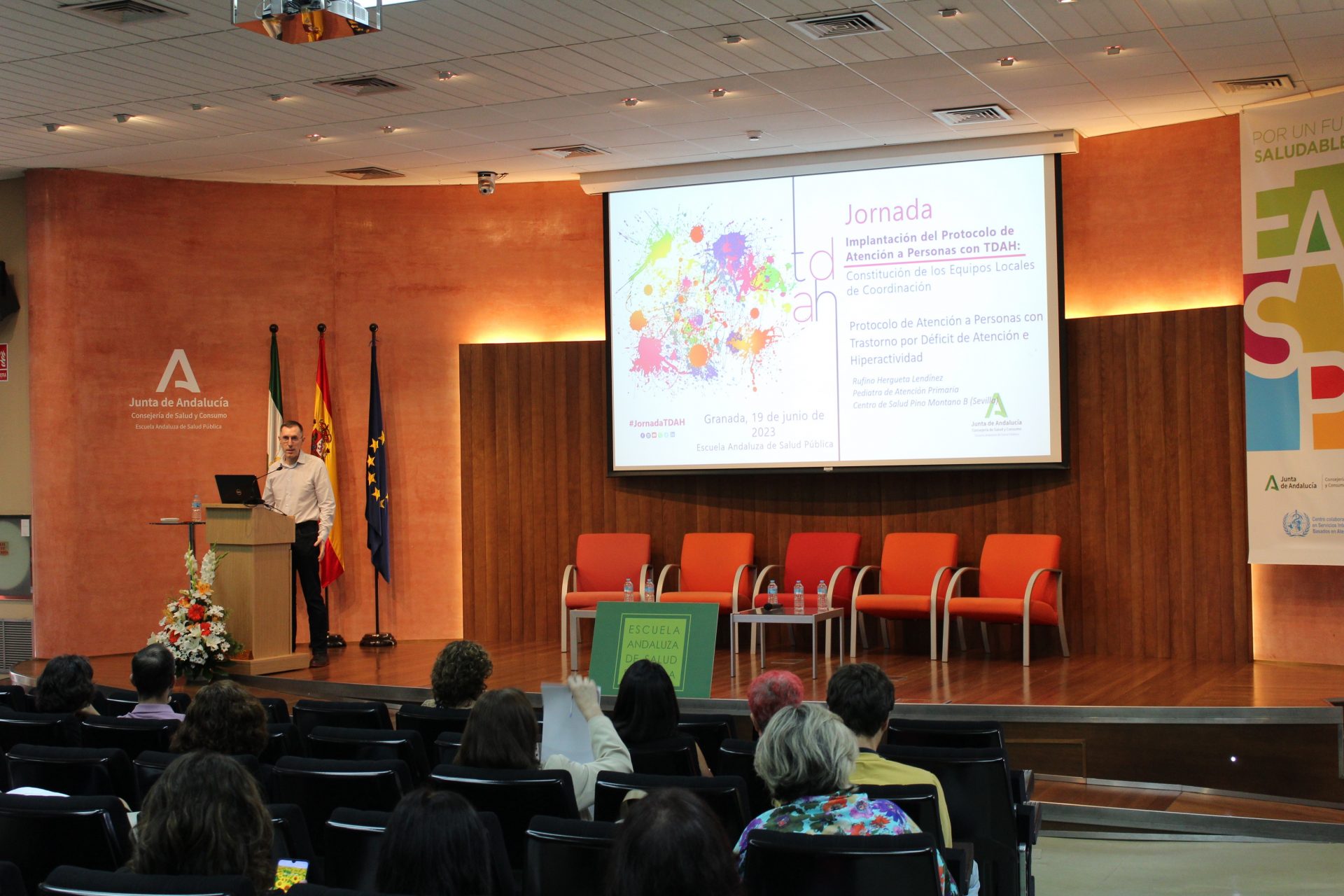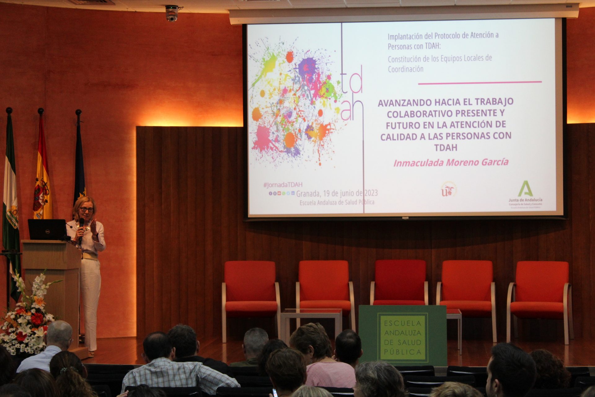 La consejera de Salud y Consumo de la Junta de Andalucía, Catalina García, ha presidido este lunes la jornada de impulso de la constitución de los equipos locales de coordinación intersectorial para la implantación del Protocolo de Atención a Personas con Trastorno por Déficit de Atención e Hiperactividad (TDAH), aprobado en 2021, en una sesión en la que han participado más de un millar de profesionales, tanto de forma presencial como online, celebrada en la Escuela Andaluza de Salud Pública (EASP), en Granada.