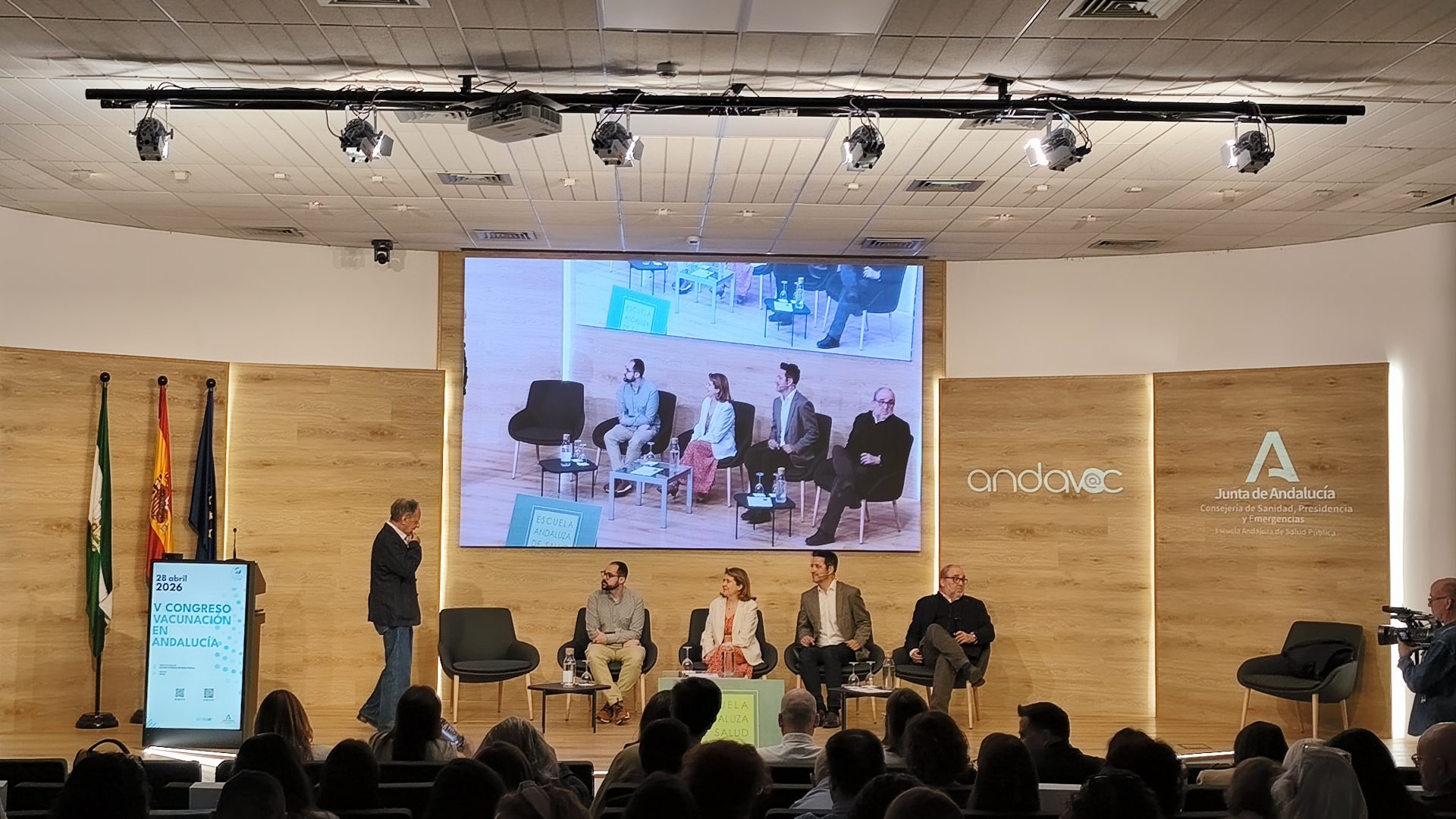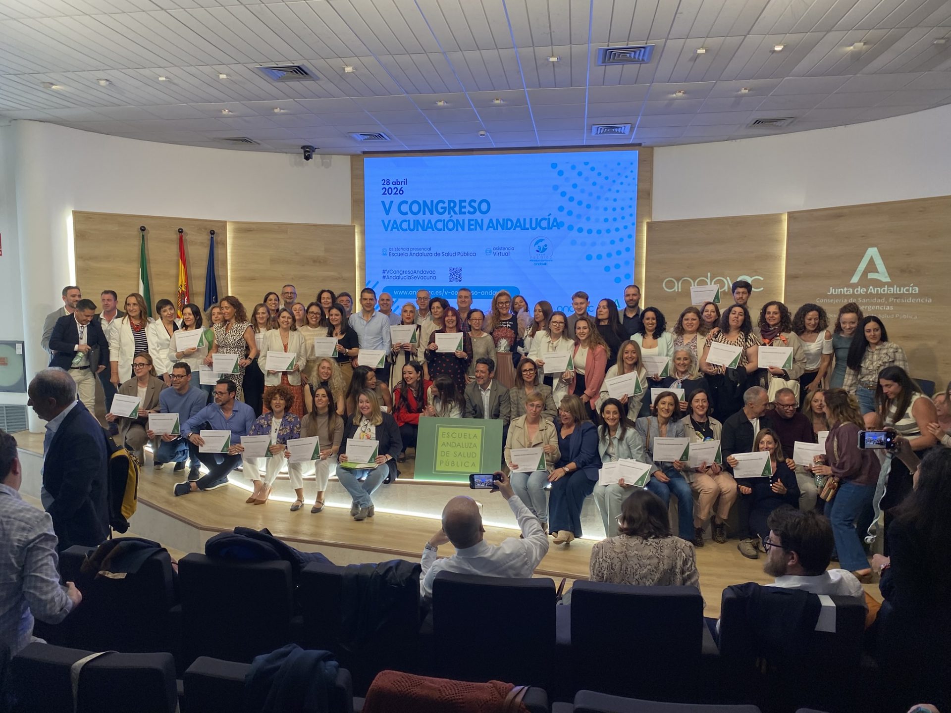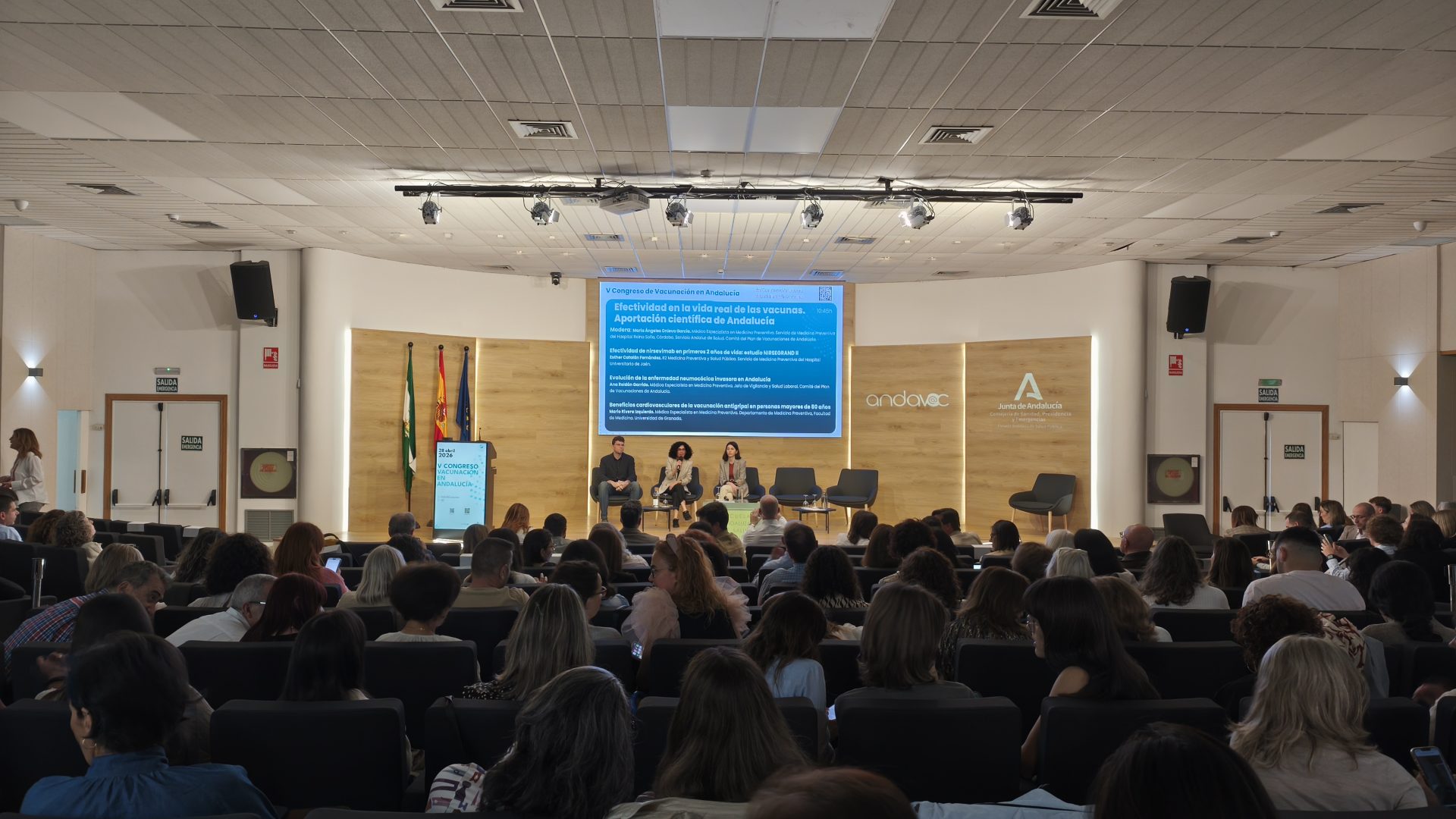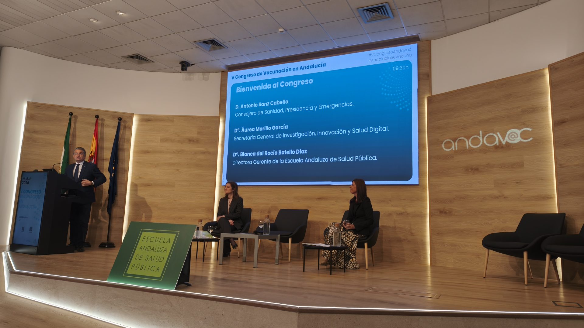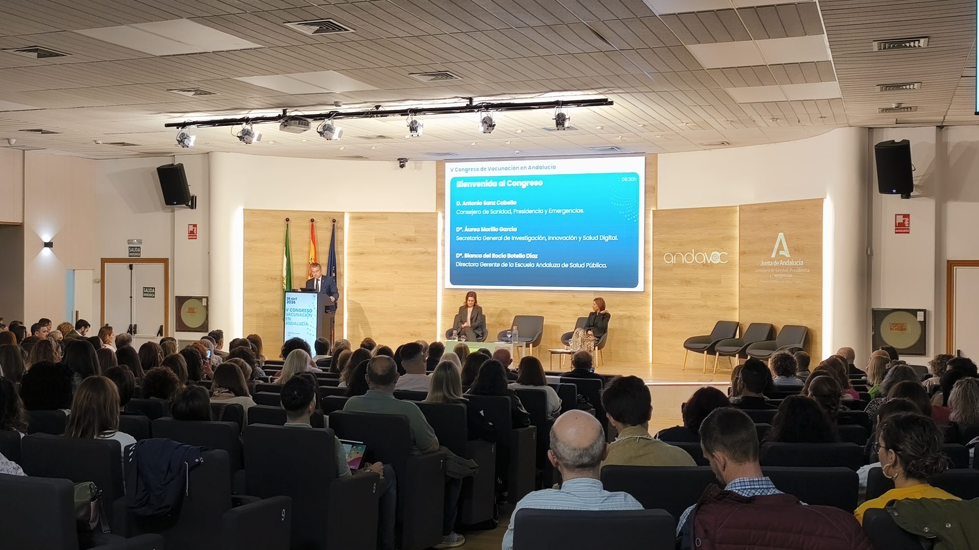 El consejero de Sanidad, Presidencia y Emergencias, Antonio Sanz, ha inaugurado el V Congreso Andavac (Plan de Vacunaciones en Andalucía), celebrado en la Escuela Andaluza de Salud Pública (EASP) en Granada, en el que han participado más de 700 profesionales sanitarios de toda Andalucía y donde se han entregado los Premios Andalucía se vacuna a las mejoras coberturas vacunales y a las mejores iniciativas para movilizar a los grupos diana.