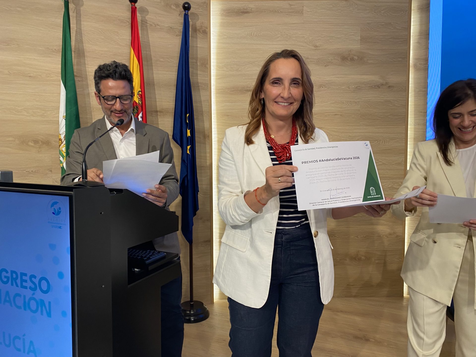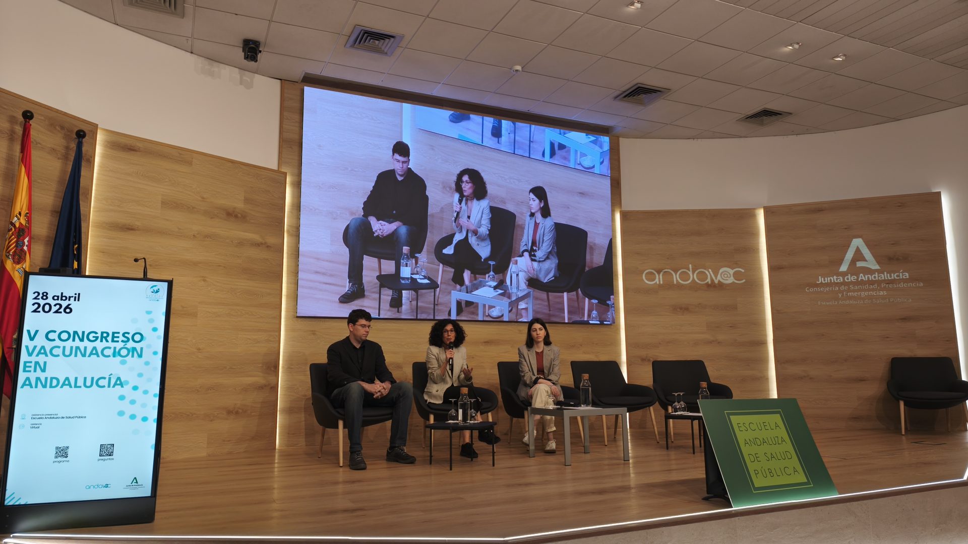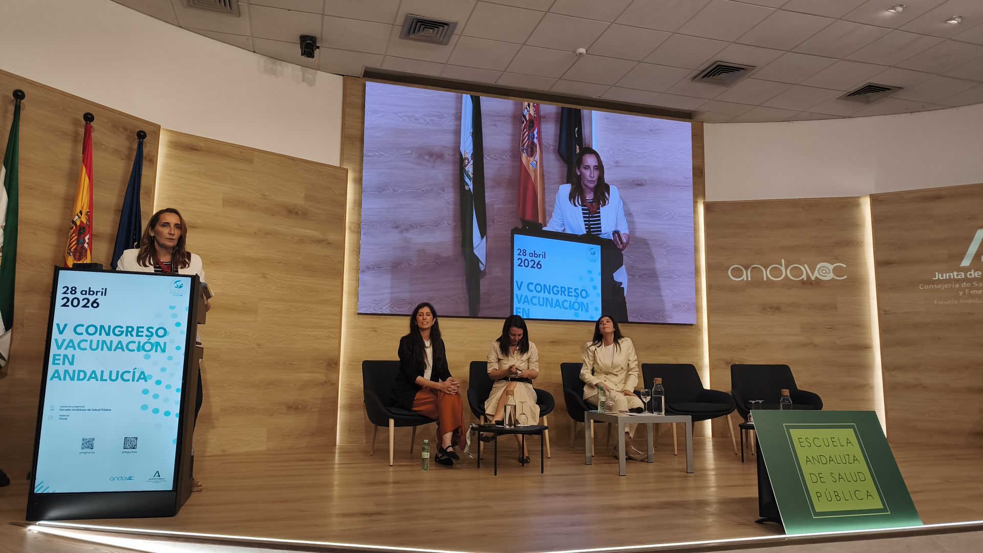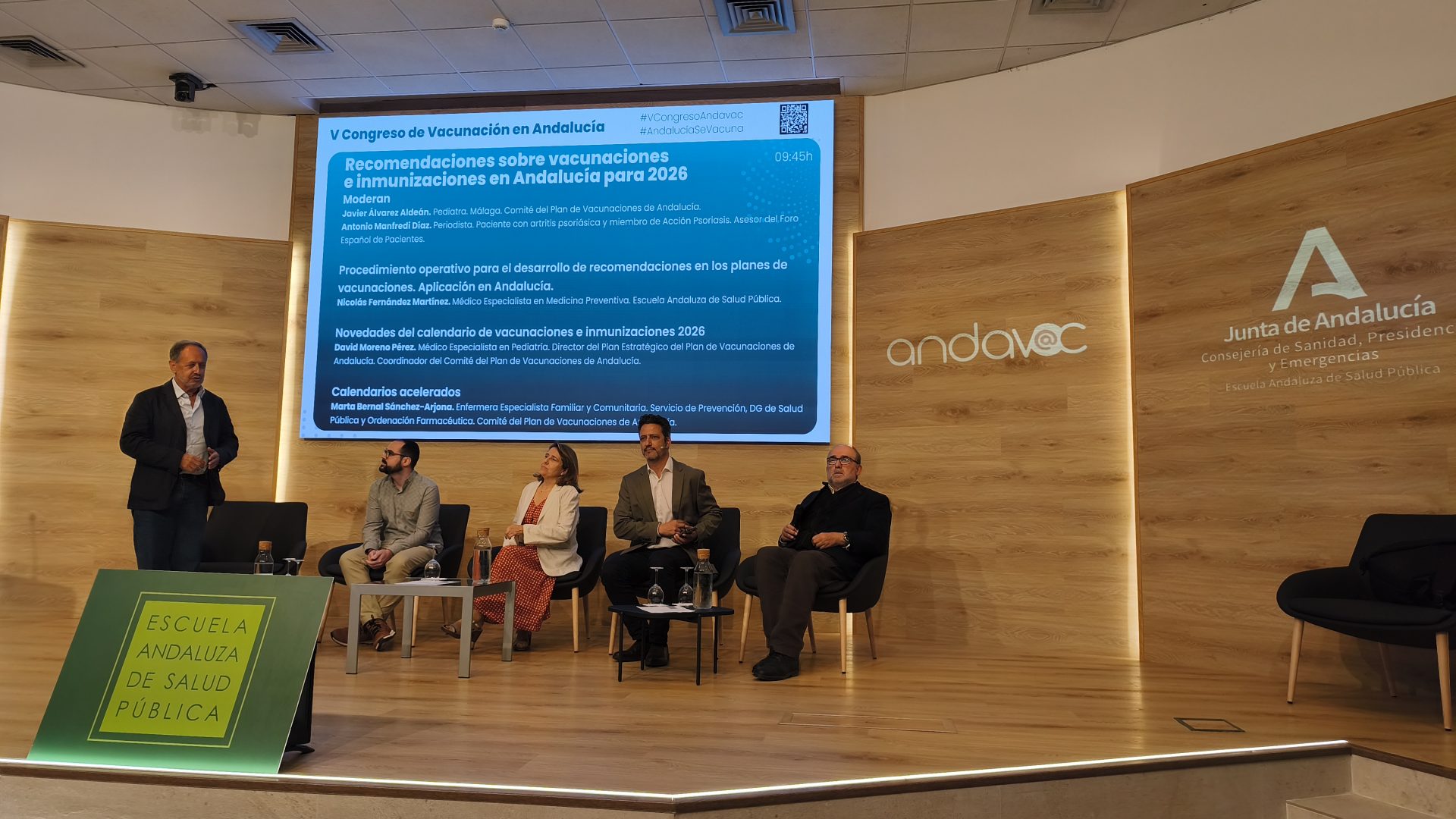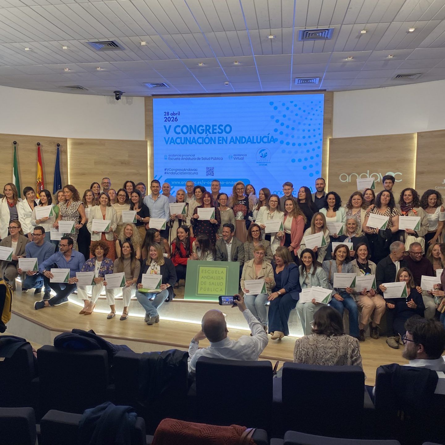 El consejero de Sanidad, Presidencia y Emergencias, Antonio Sanz, ha inaugurado el V Congreso Andavac (Plan de Vacunaciones en Andalucía), celebrado en la Escuela Andaluza de Salud Pública (EASP) en Granada, en el que han participado más de 700 profesionales sanitarios de toda Andalucía y donde se han entregado los Premios Andalucía se vacuna a las mejoras coberturas vacunales y a las mejores iniciativas para movilizar a los grupos diana.