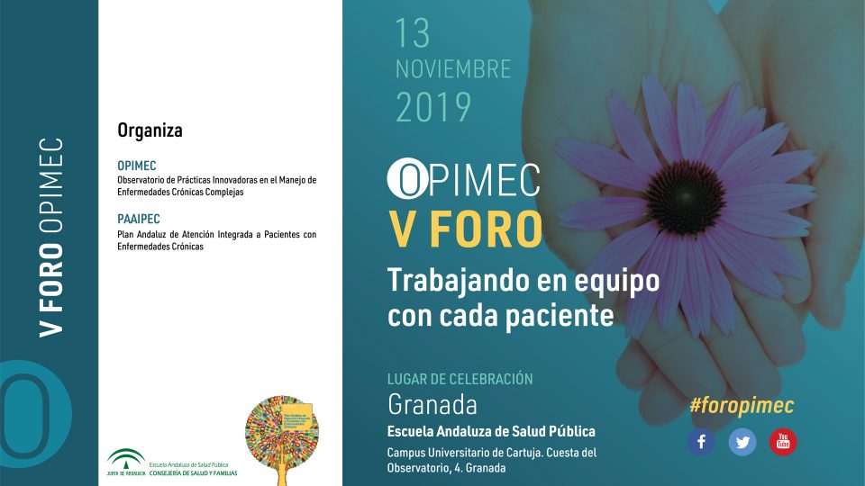 PROGRAMA #foropimec LUGAR Y FECHA: Escuela Andaluza de Salud Pública 13 de noviembre de 2019 DIRIGIDO A: Direcciones asistenciales de los centros del Sistema Sanitario Público de Andalucía. Responsables de centros asistenciales con implicación en la atención a pacientes con enfermedades crónicas. Profesionales del Sistema Sanitario Público de Andalucía con implicación en la atención a…