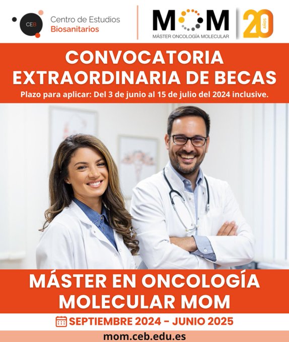 Nos complace anunciar nuevamente la Convocatoria de Becas de Excelencia para la realización del Máster online en Oncología Molecular MOM para el siguiente curso lectivo que comienza el próximo mes de septiembre.