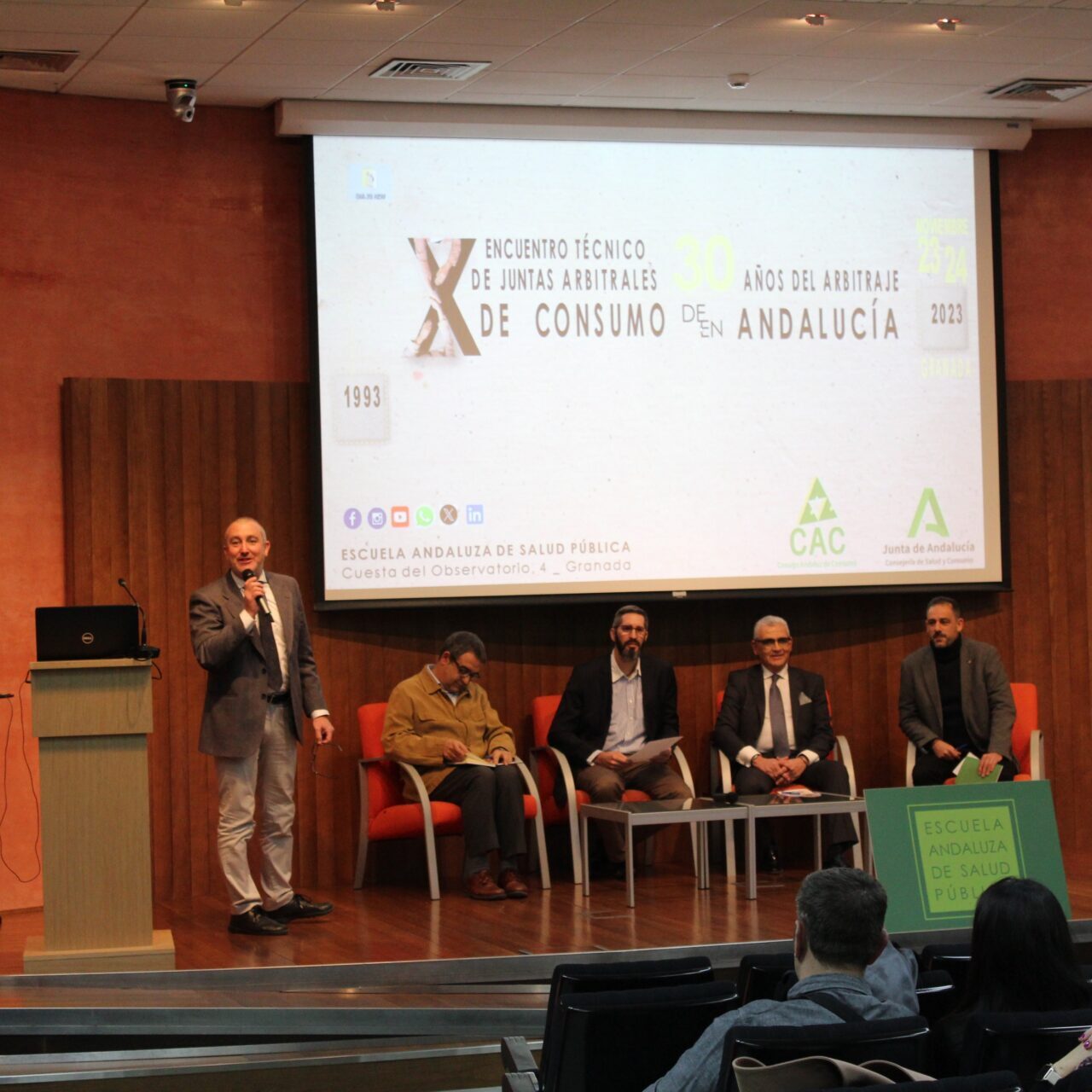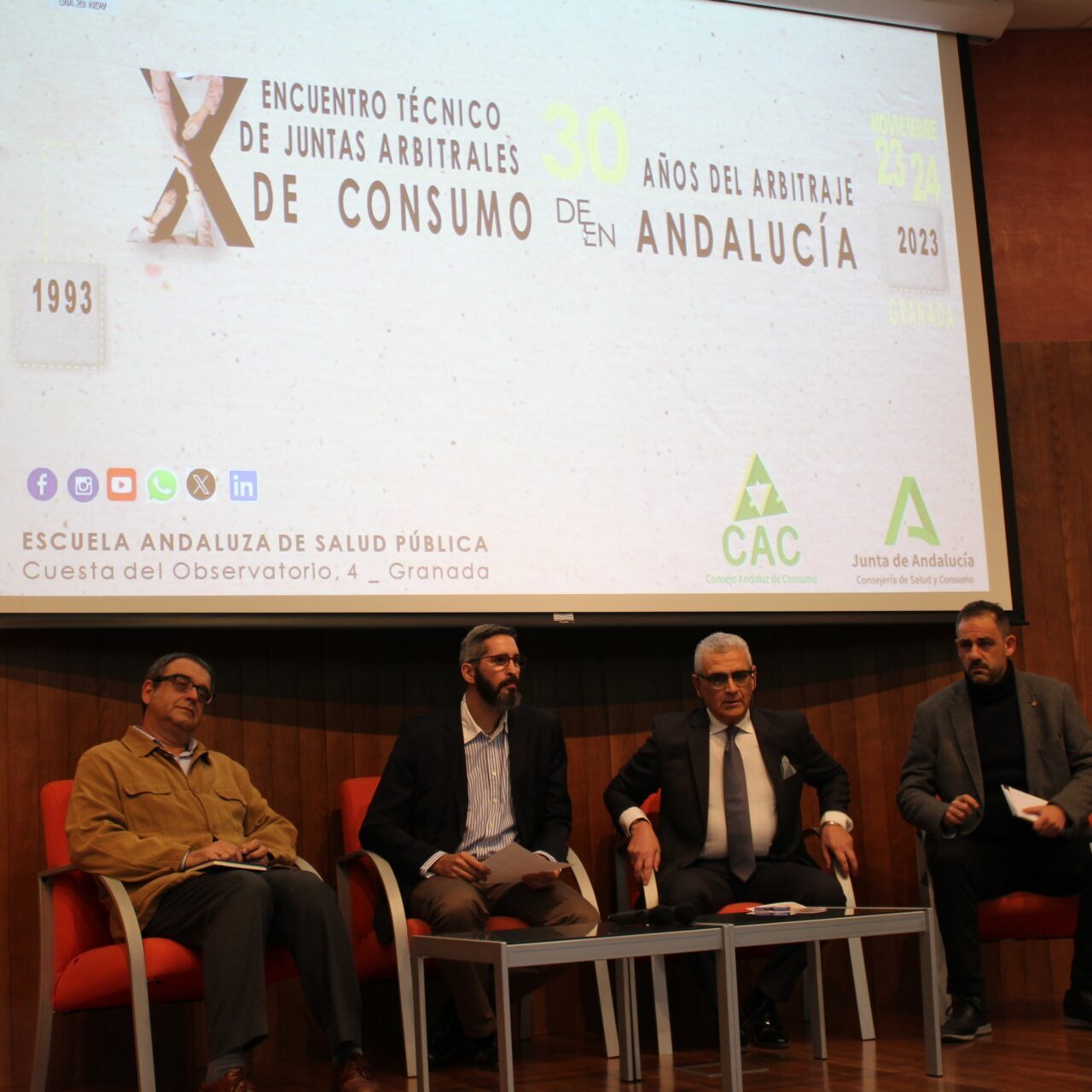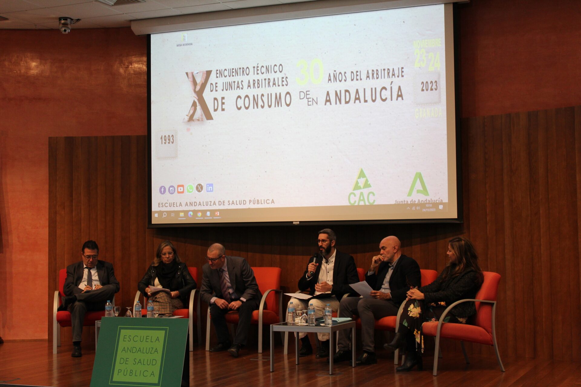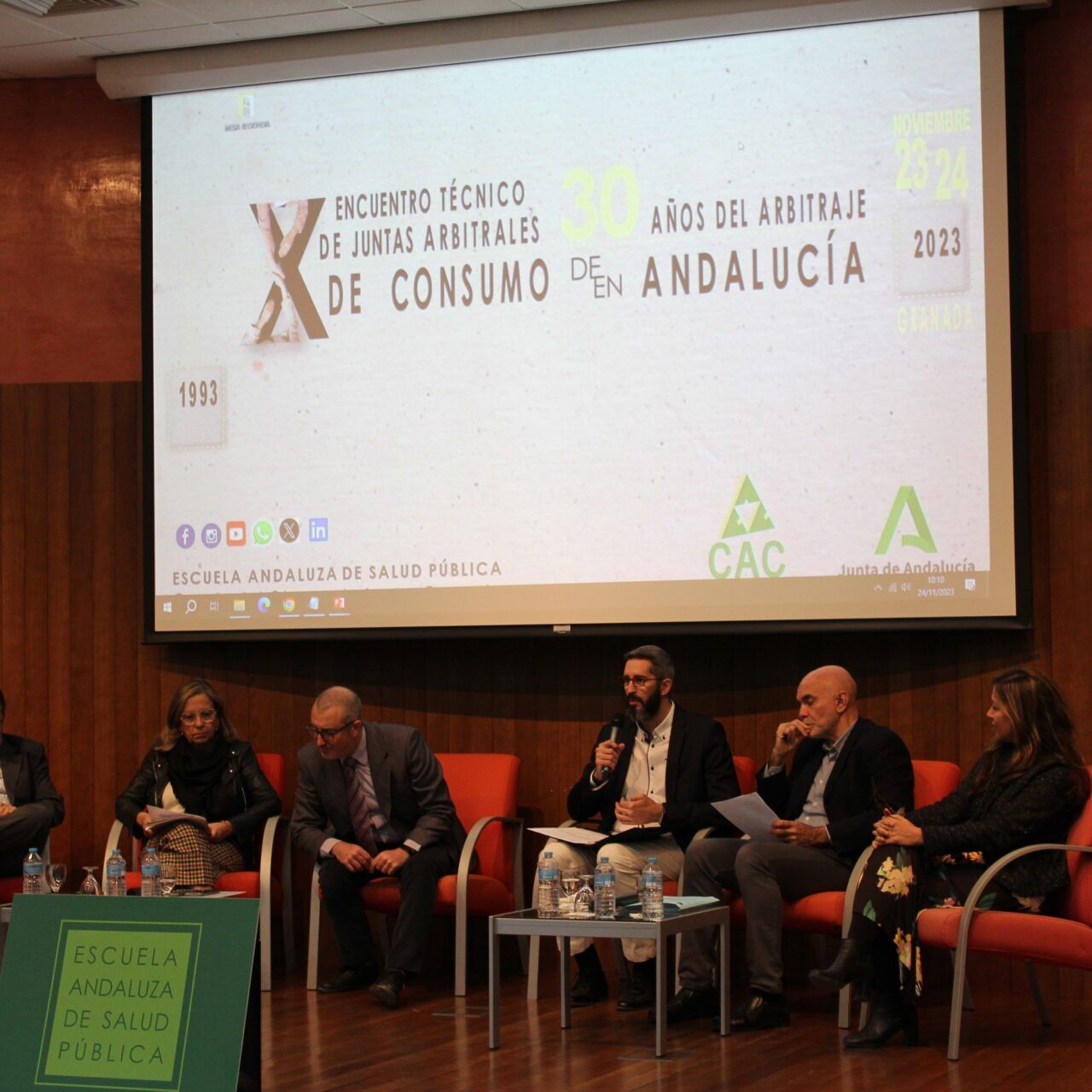 La Dirección General de Consumo de la Junta de Andalucía ha celebrado los días 23 y 24 de noviembre una de las citas marcadas en rojo en el calendario, el Encuentro Técnico de Juntas Arbitrales de Consumo, que ha alcanzado su décima edición. El encuentro, que ha tenido lugar en la sede de la Escuela de Salud Pública de Andalucía (Campus Universitario de Cartuja en Granada), ha contado con más de un centenar de participantes, entre representantes de Administraciones, OMIC, universidades, asociaciones, y empresas.