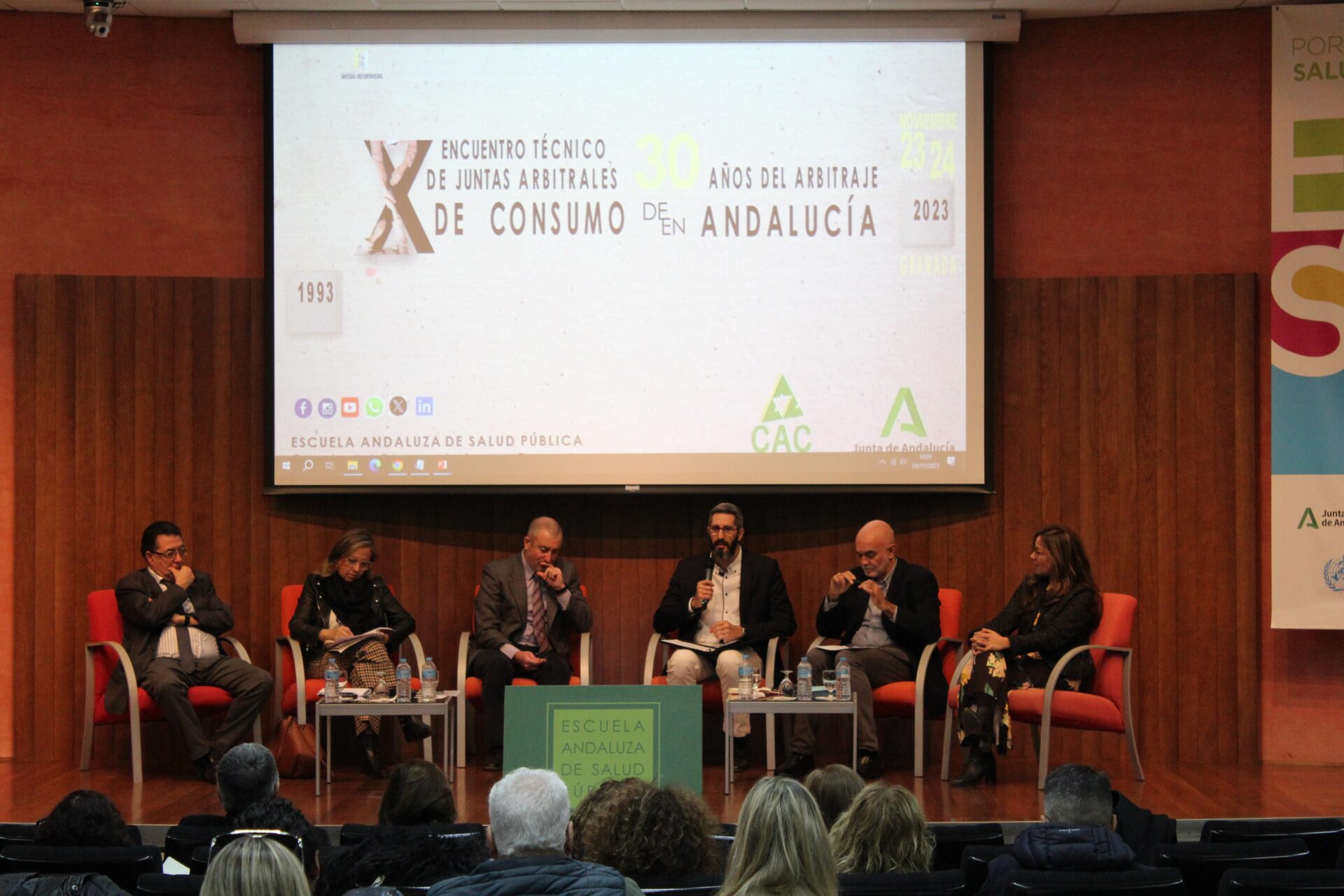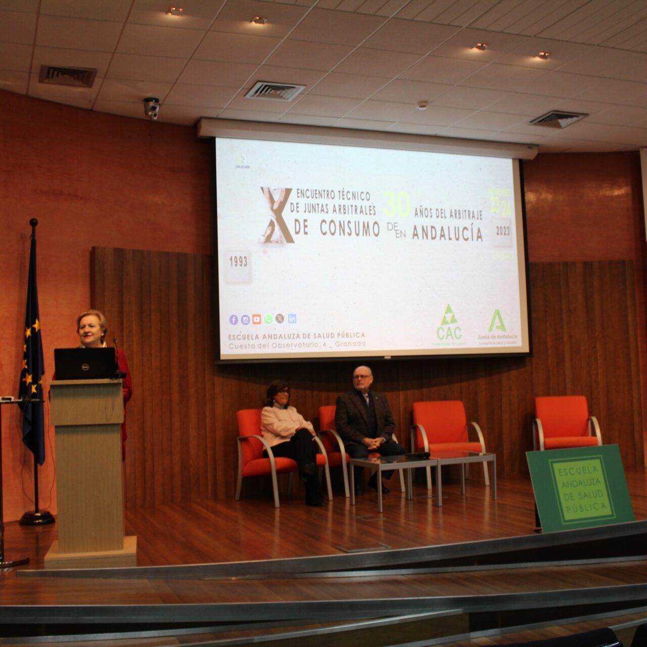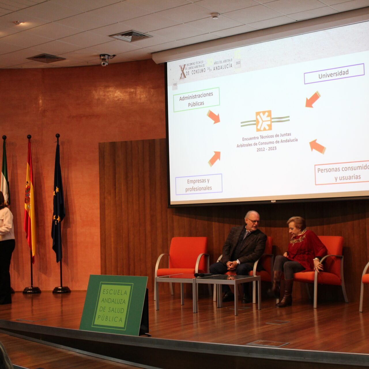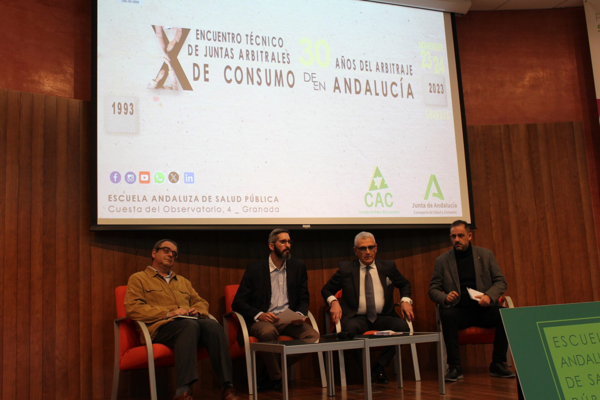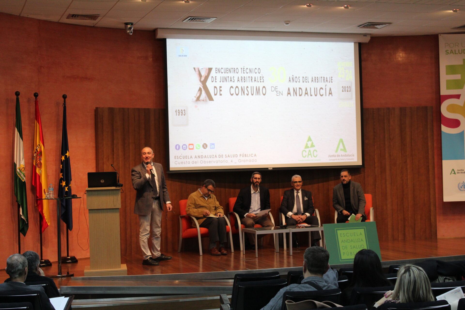 La Dirección General de Consumo de la Junta de Andalucía ha celebrado los días 23 y 24 de noviembre una de las citas marcadas en rojo en el calendario, el Encuentro Técnico de Juntas Arbitrales de Consumo, que ha alcanzado su décima edición. El encuentro, que ha tenido lugar en la sede de la Escuela de Salud Pública de Andalucía (Campus Universitario de Cartuja en Granada), ha contado con más de un centenar de participantes, entre representantes de Administraciones, OMIC, universidades, asociaciones, y empresas.