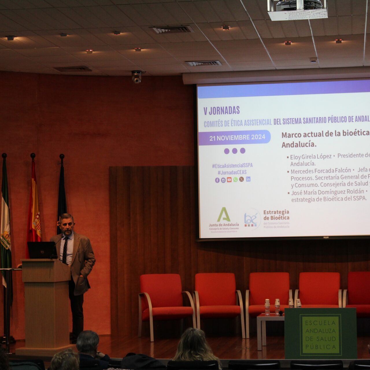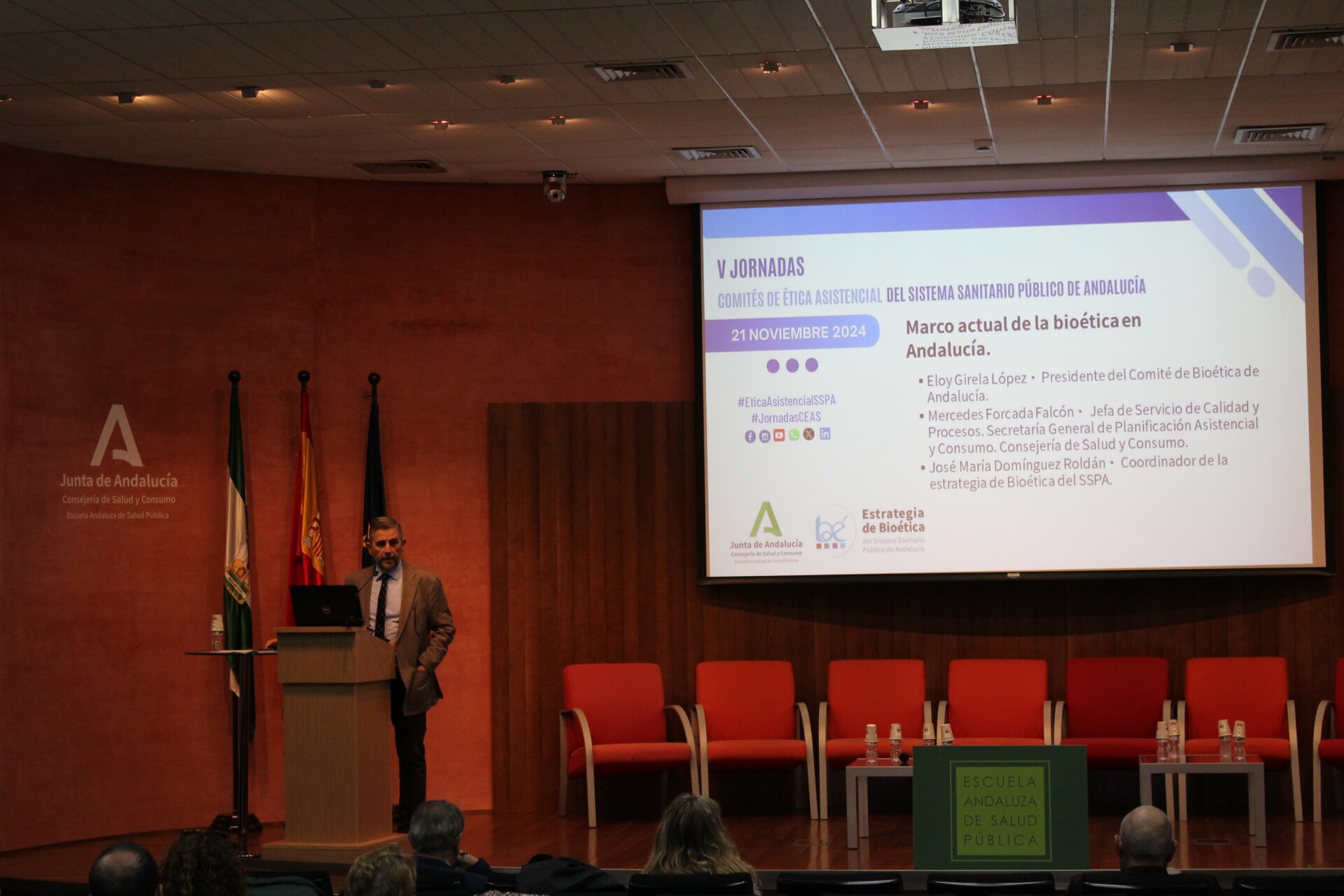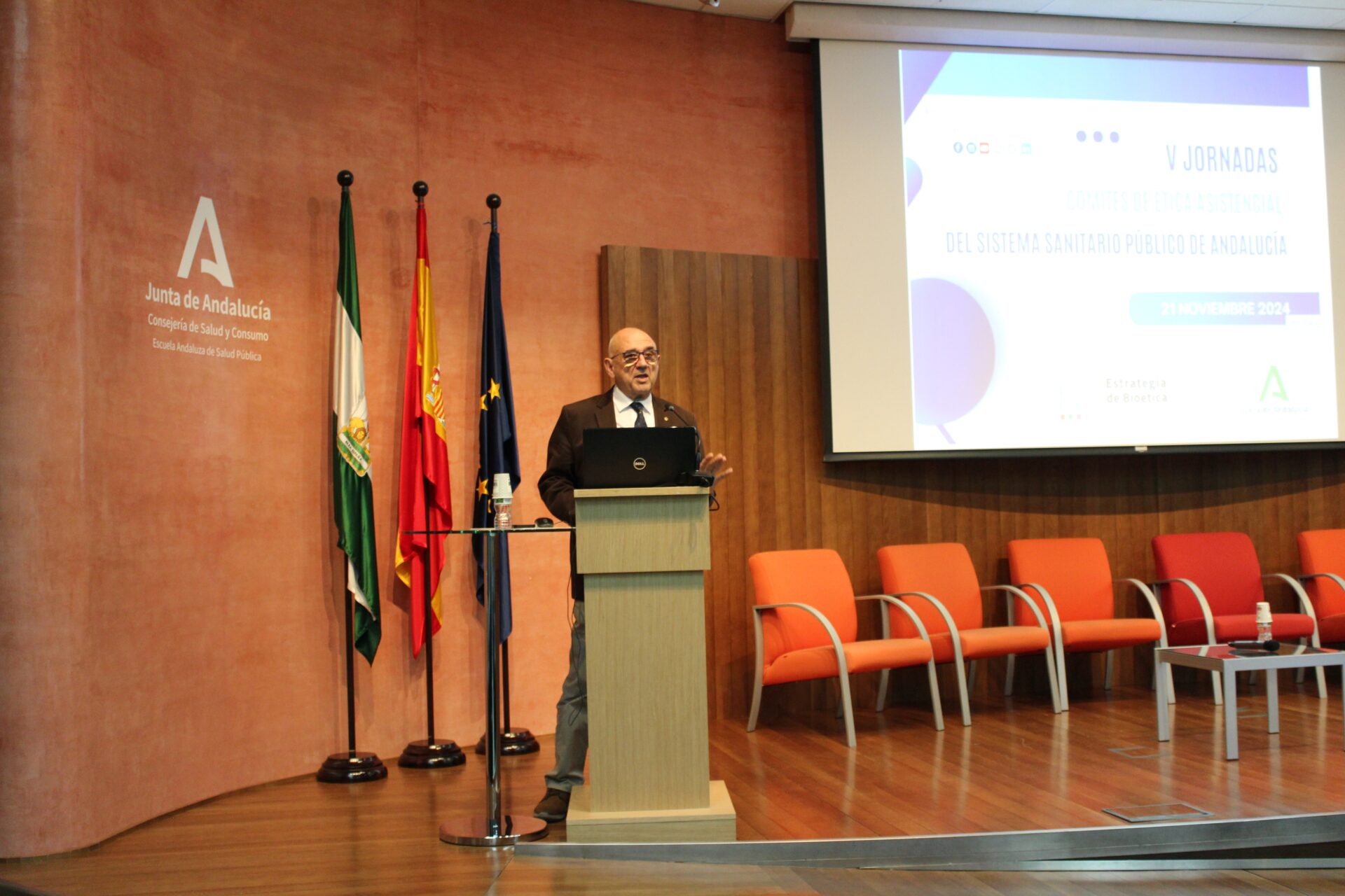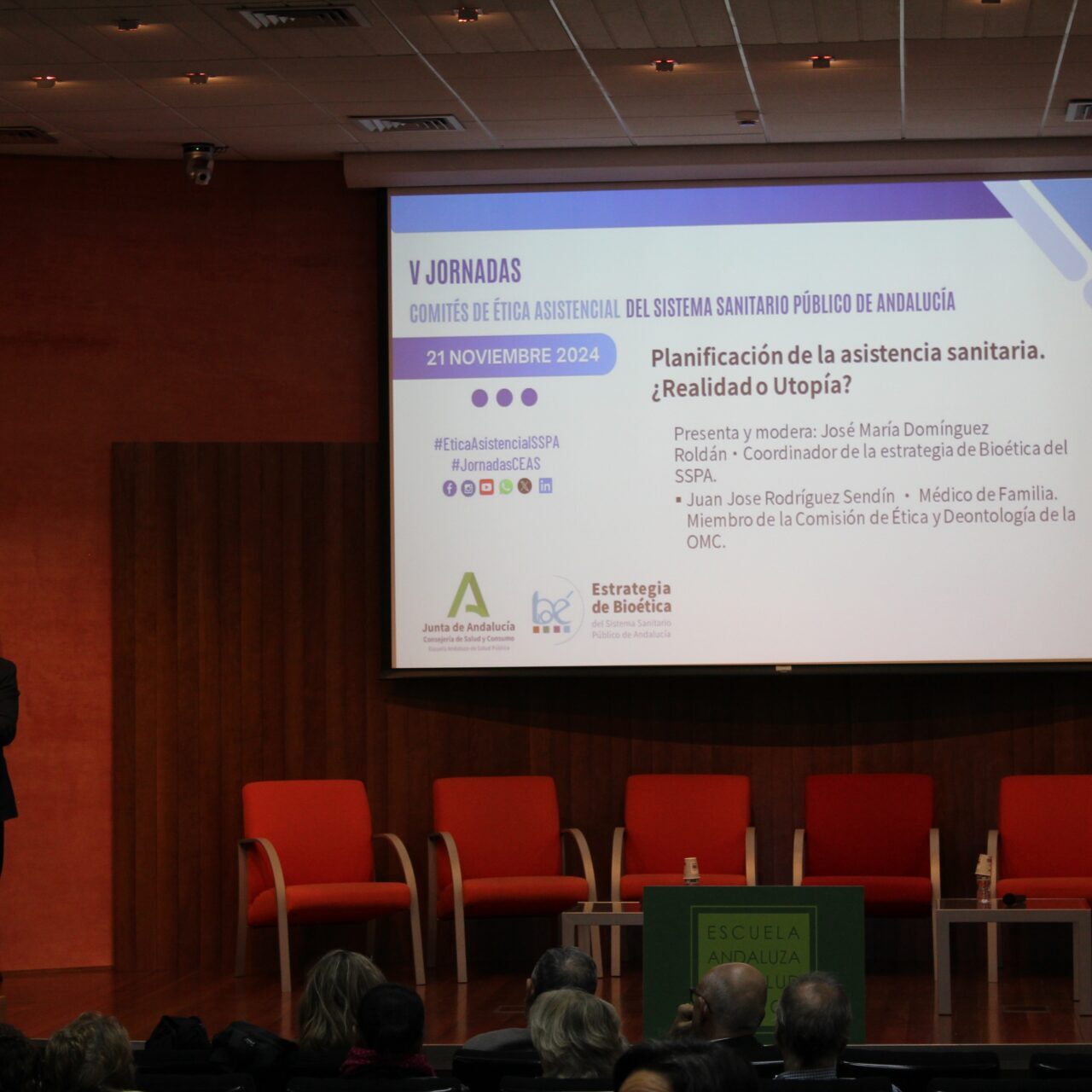 Cerca de 200 profesionales del Sistema Sanitario Público de Andalucía (SSPA) vinculados o interesados en la ética asistencial han participado en las V Jornadas de Comités de Ética Asistencial, una actividad organizada por la Estrategia de Bioética del Sistema Sanitario Público Andaluz (SSPA) en colaboración con la Escuela Andaluza de Salud Pública (EASP). En el encuentro, han analizado las novedades normativas en esta materia y el funcionamiento de los comités con el objetivo de contribuir a la mejora de la calidad integral de la atención sanitaria.