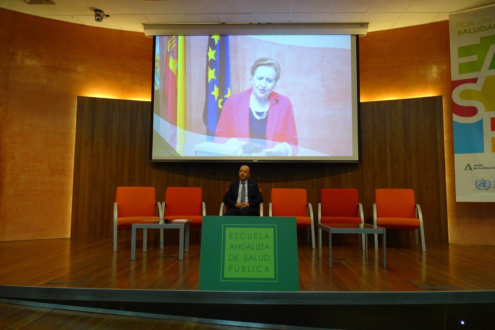 La directora de la EASP, Blanca Fernández-Capel y el vicerrector de Docencia de la UGR, Juan Manuel Martín han remarcado, como valor adicional del MEDOS, la sinergia que se genera entre el alumnado, que aglutina a profesionales en puestos de dirección y a quienes empiezan su especialización en el campo de la salud.