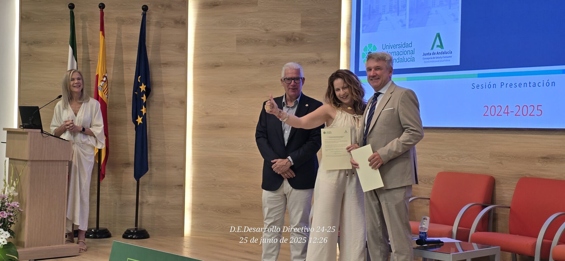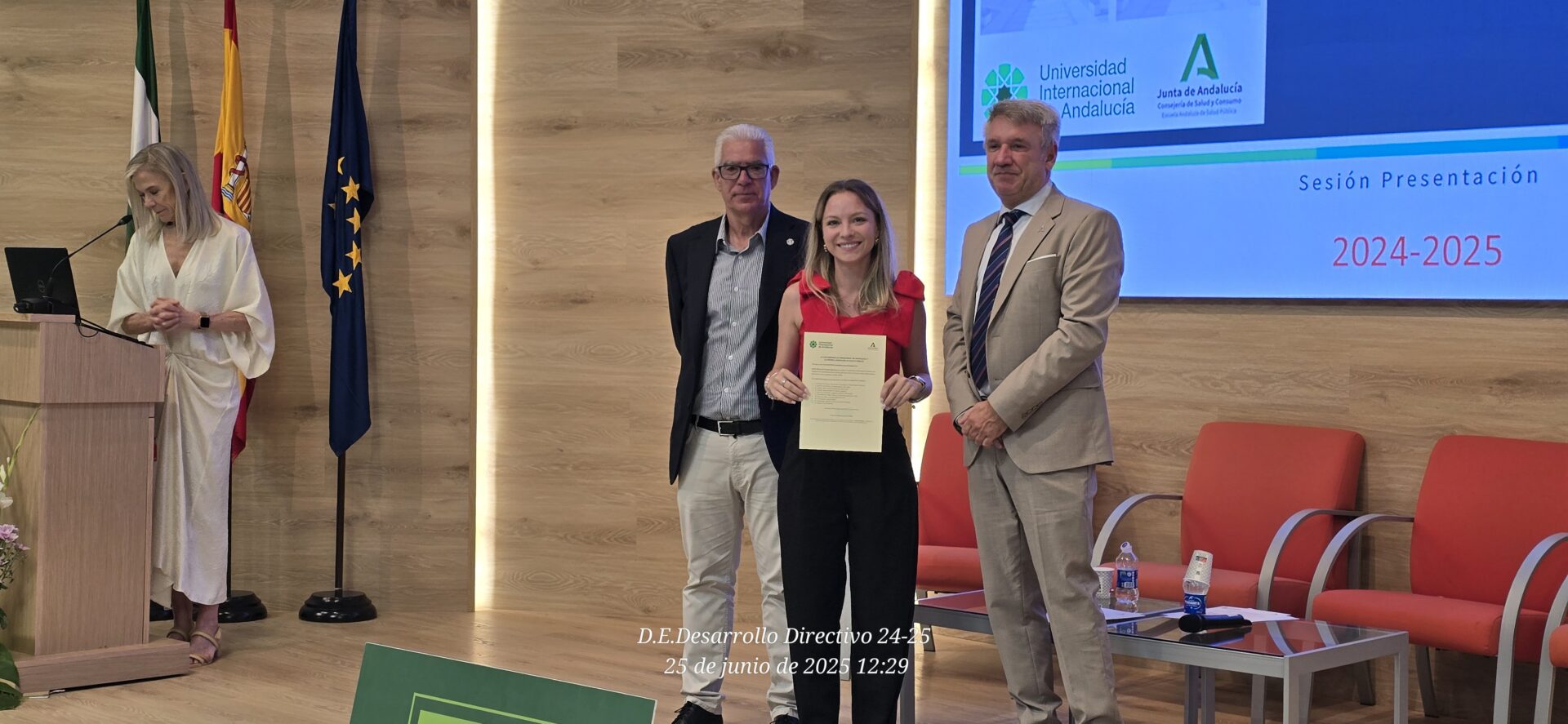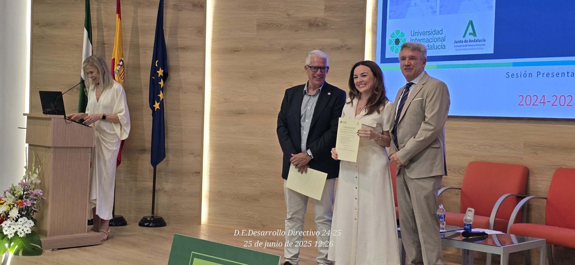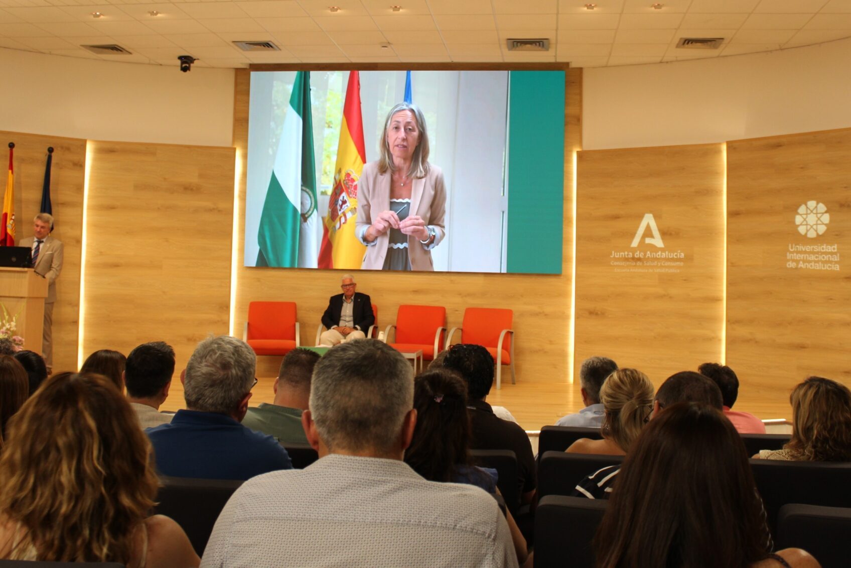 La consejera de Salud y Consumo, Rocío Hernández, ha mandado unas palabras de felicitación quienes reciben hoy su diploma, destacando que “desde la Consejería de Salud y Consumo se creemos firmemente que contar con equipos directivos bien formados es esencial para afrontar los desafíos de un sistema público que quiere seguir siendo referente, accesible y de calidad para toda la ciudadanía andaluza”. “Este diploma de especialización es fundamental para contar con directivos capaces de liderar con visión, rigor y humanidad”, ha añadido. La consejera se ha despedido agradeciendo a las instituciones que desarrollan el Diploma, al equipo docente y al Servicio Andaluz de Salud su compromiso e implicación desde el inicio del programa