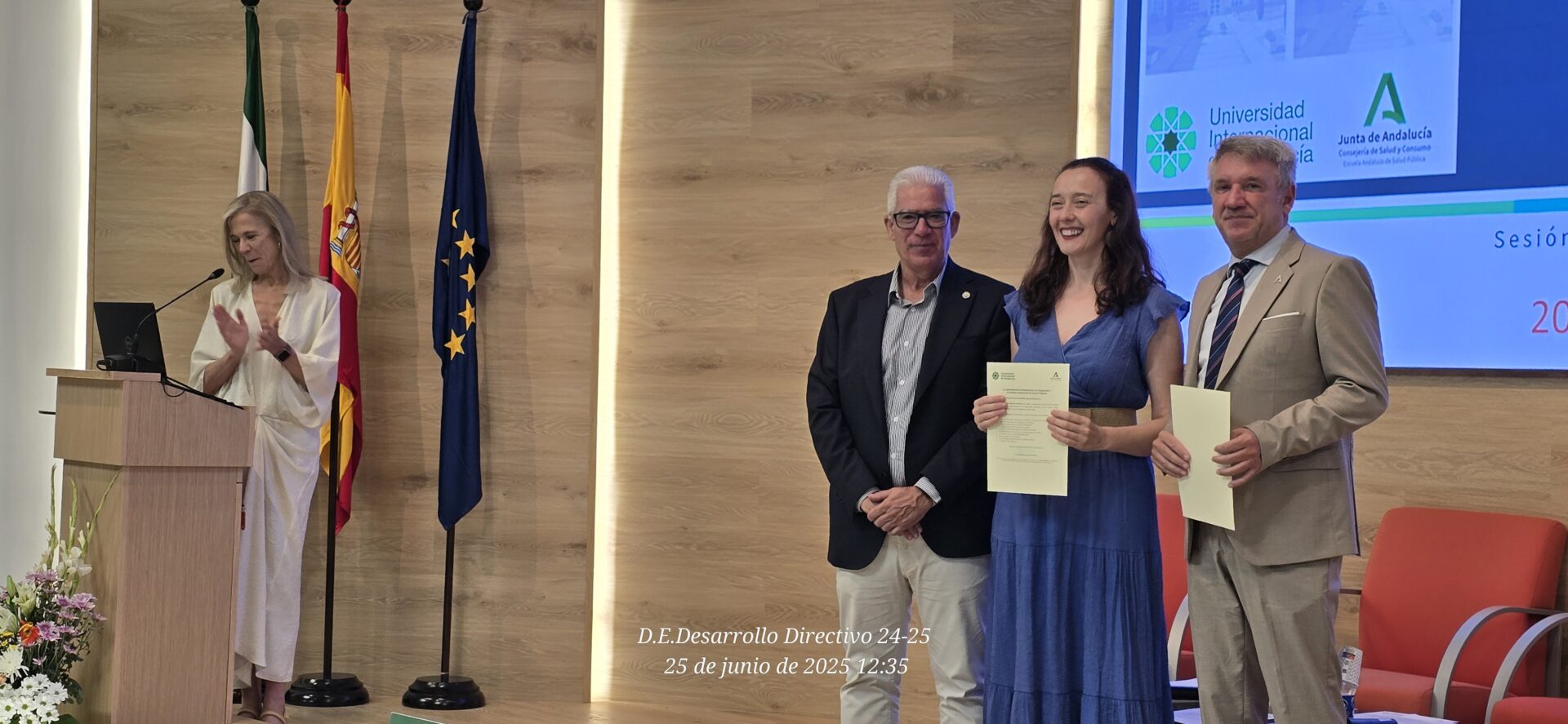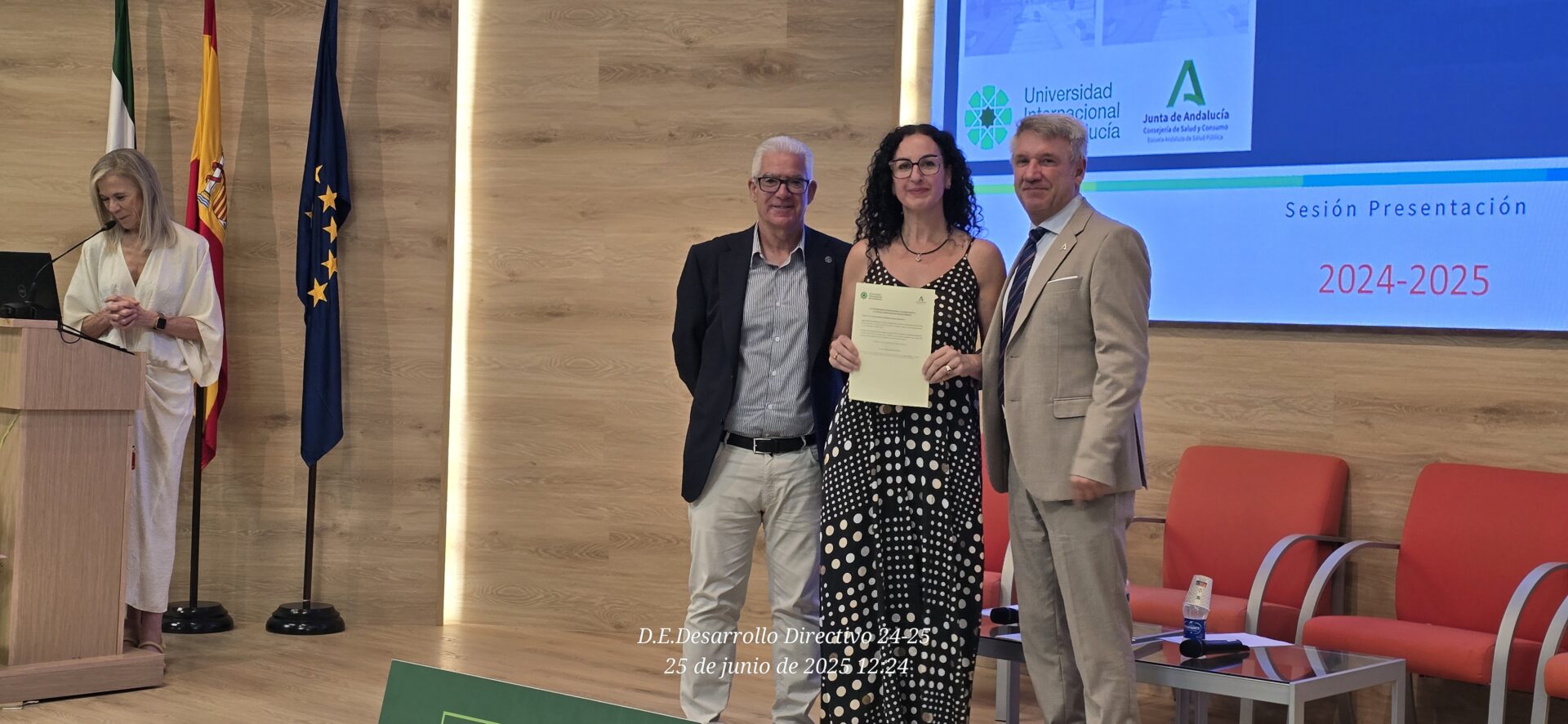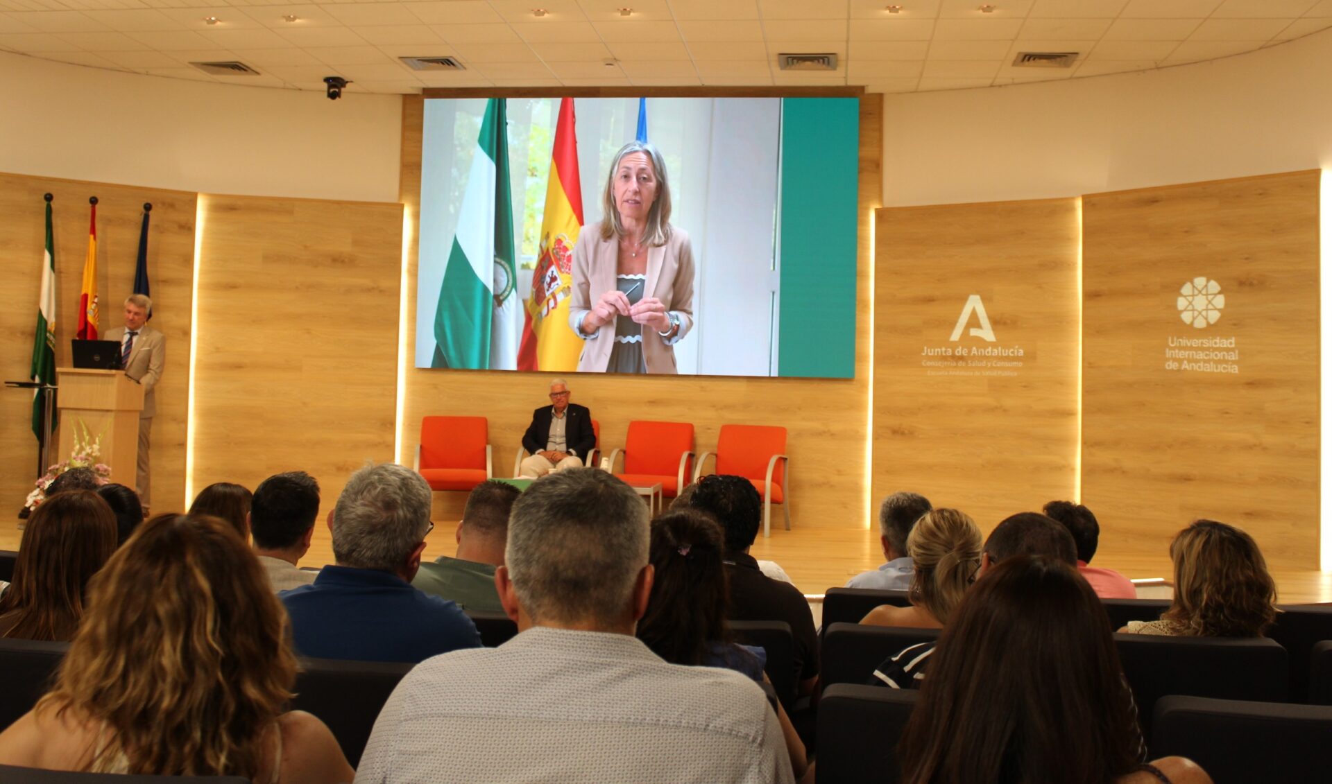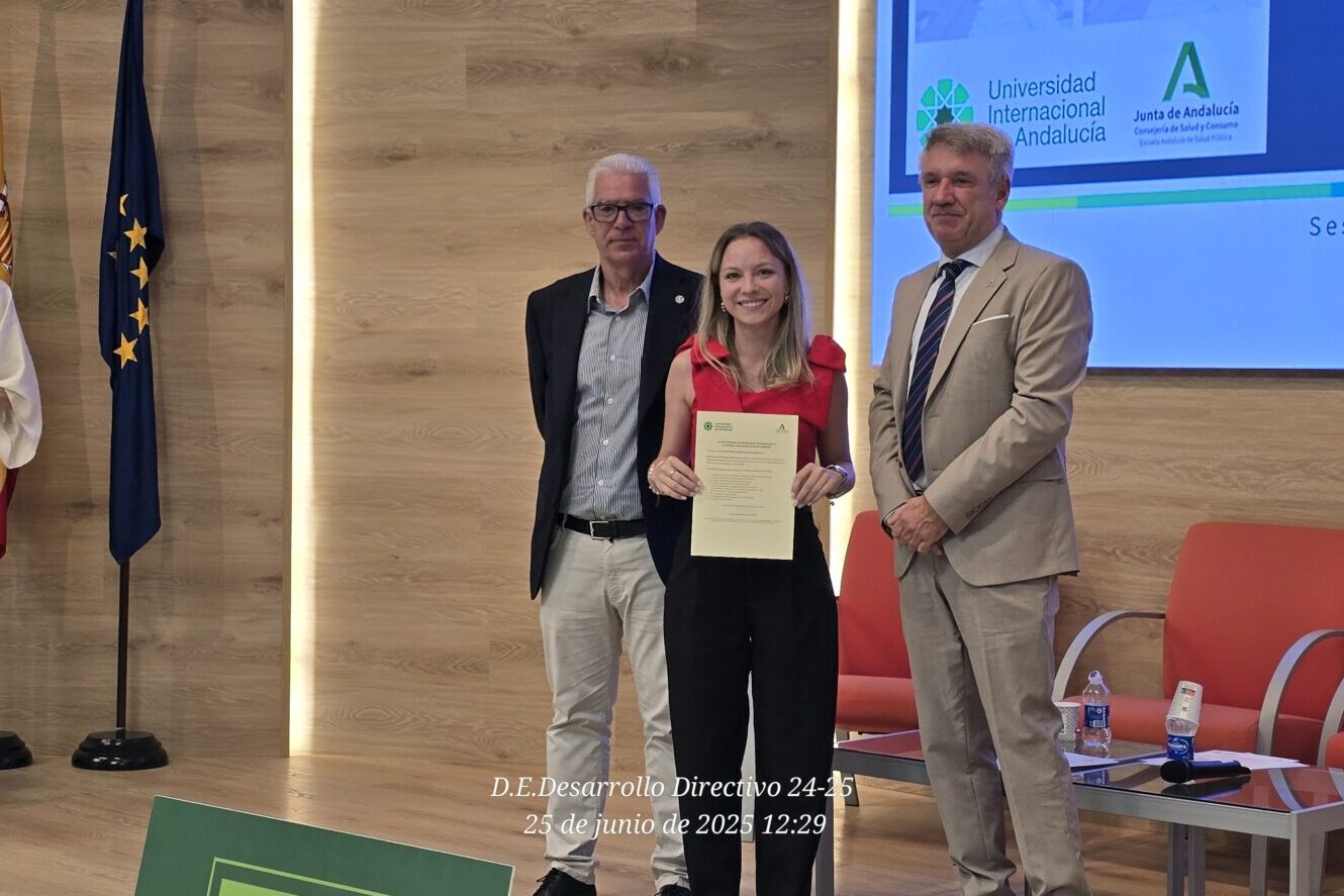 La consejera de Salud y Consumo, Rocío Hernández, ha mandado unas palabras de felicitación quienes reciben hoy su diploma, destacando que “desde la Consejería de Salud y Consumo se creemos firmemente que contar con equipos directivos bien formados es esencial para afrontar los desafíos de un sistema público que quiere seguir siendo referente, accesible y de calidad para toda la ciudadanía andaluza”. “Este diploma de especialización es fundamental para contar con directivos capaces de liderar con visión, rigor y humanidad”, ha añadido. La consejera se ha despedido agradeciendo a las instituciones que desarrollan el Diploma, al equipo docente y al Servicio Andaluz de Salud su compromiso e implicación desde el inicio del programa