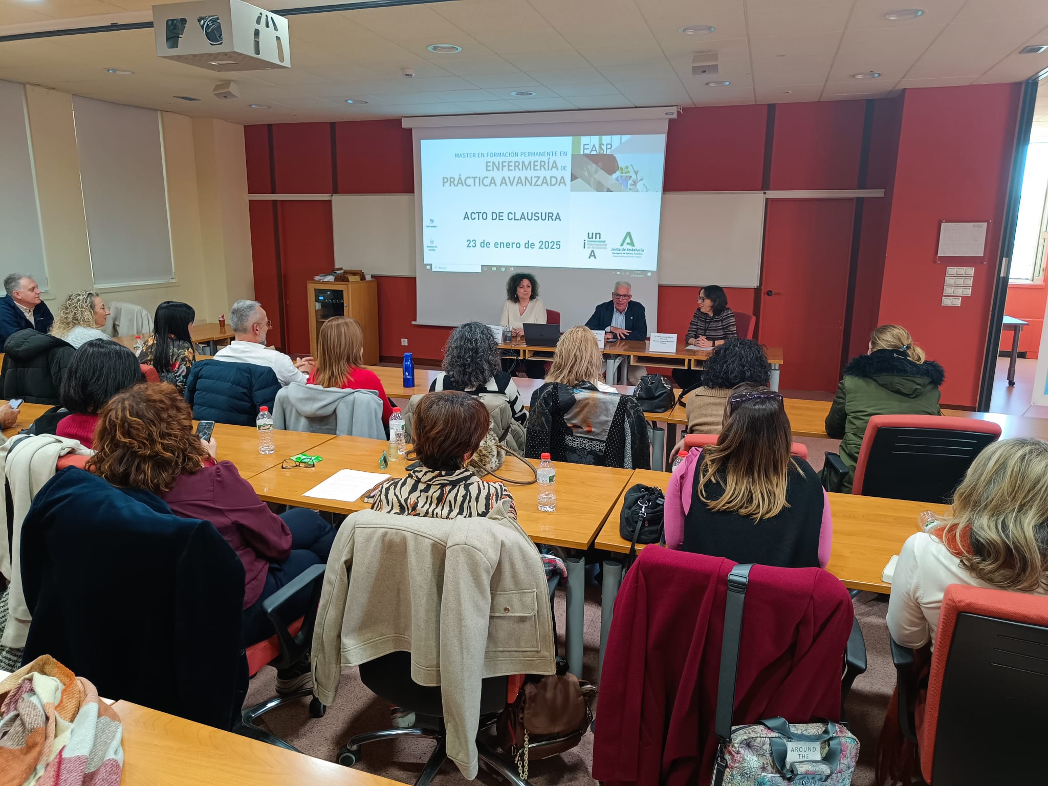 Acto de clausura de la tercera edición del “Máster Propio en Enfermería de Práctica Avanzada” (Título propio de la Universidad Internacional de Andalucia – UNIA), el día 23 de enero en la Escuela Andaluza de Salud Pública.