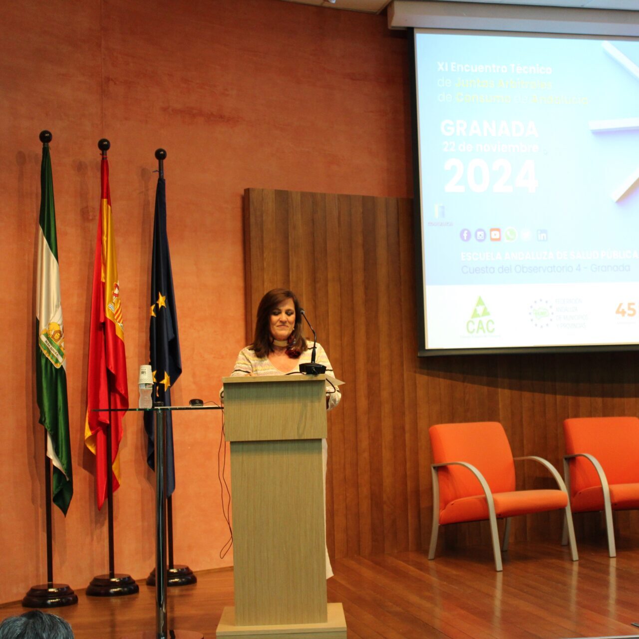 La directora general de Consumo inaugura el encuentro celebrado en la Escuela Andaluza de Salud Pública, donde ha participado alrededor de un centenar de profesionales públicos de consumo, de las OMICs y de las juntas arbitrales, así como del sector empresarial y de las asociaciones de personas consumidoras