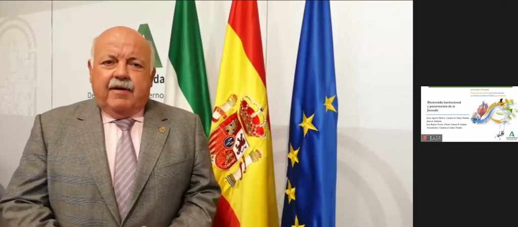 El Consejero de Salud y Familias durante la presentación del Plan de Humanización del SSPA en la #EASPvirtual