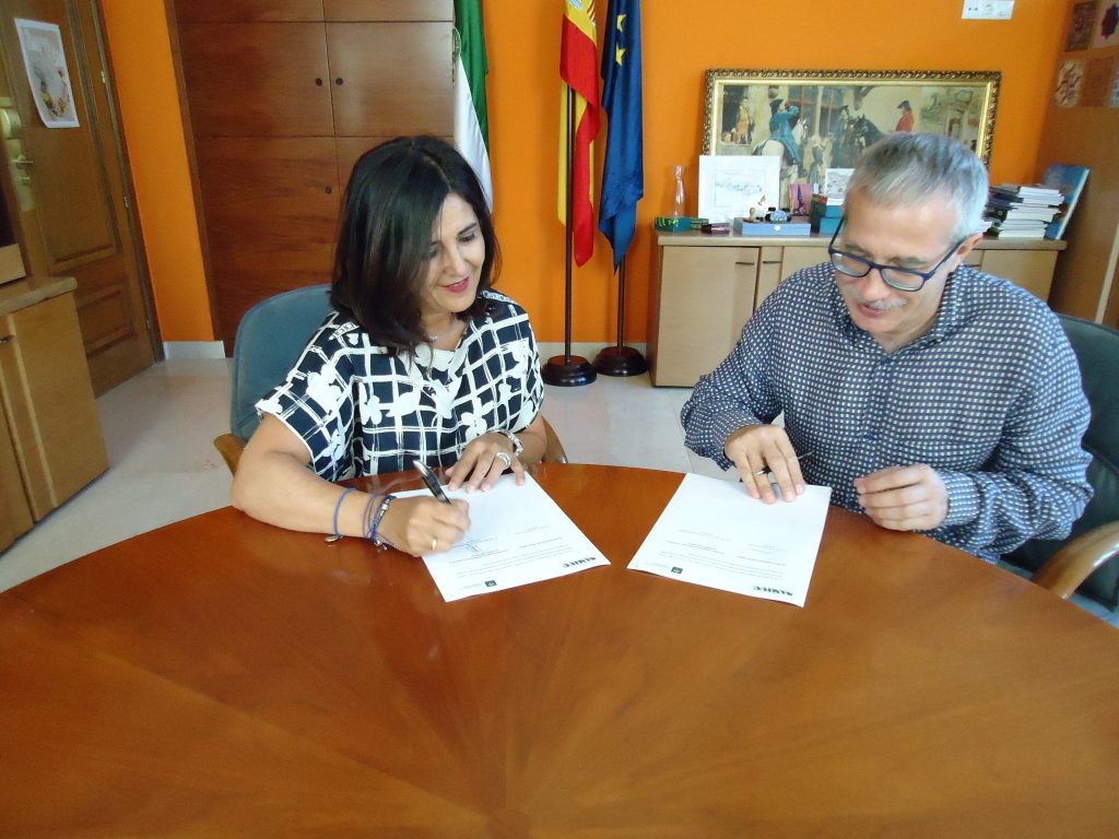 Acto de firma del convenio por parte de la presidenta de SAMIUC y el director de la EASP