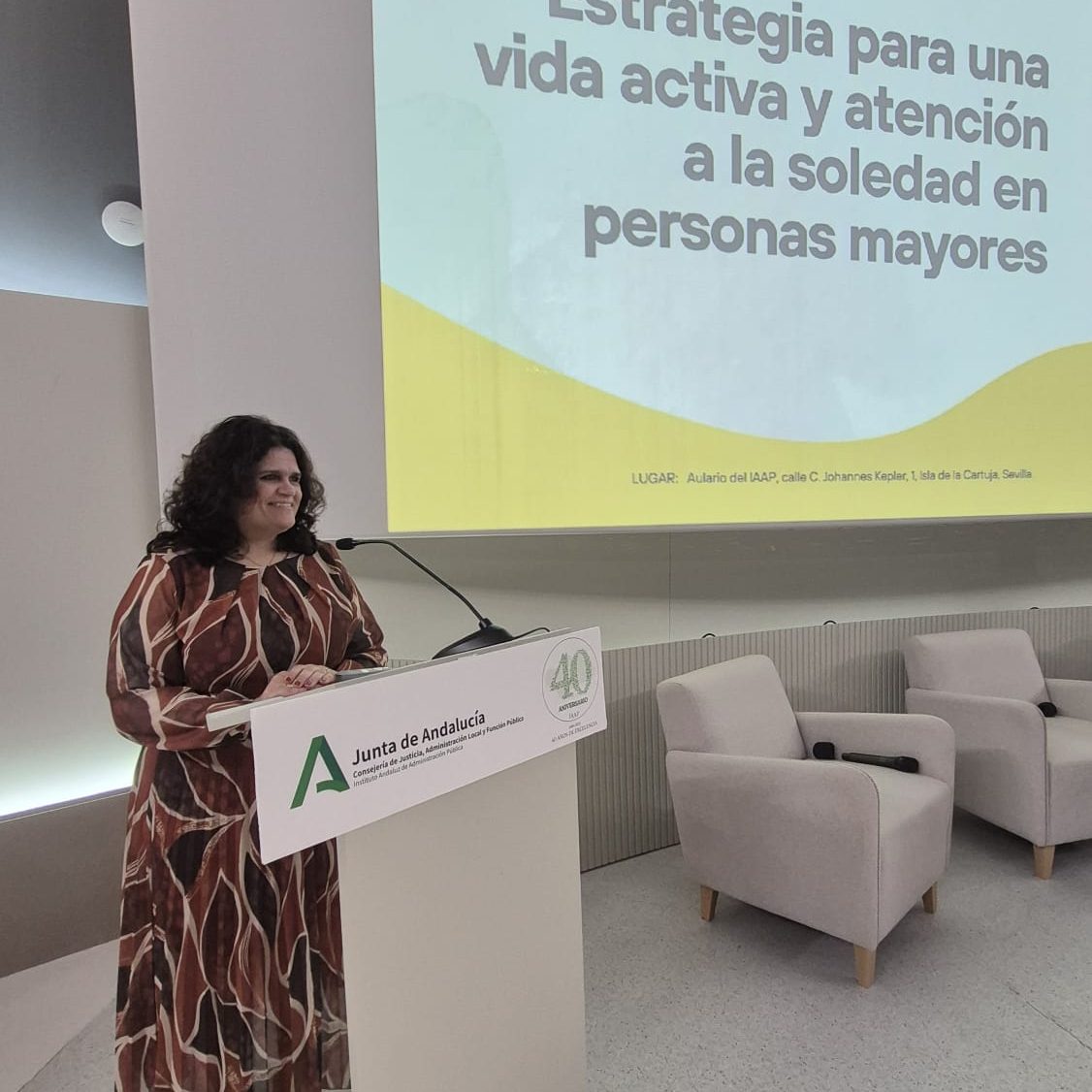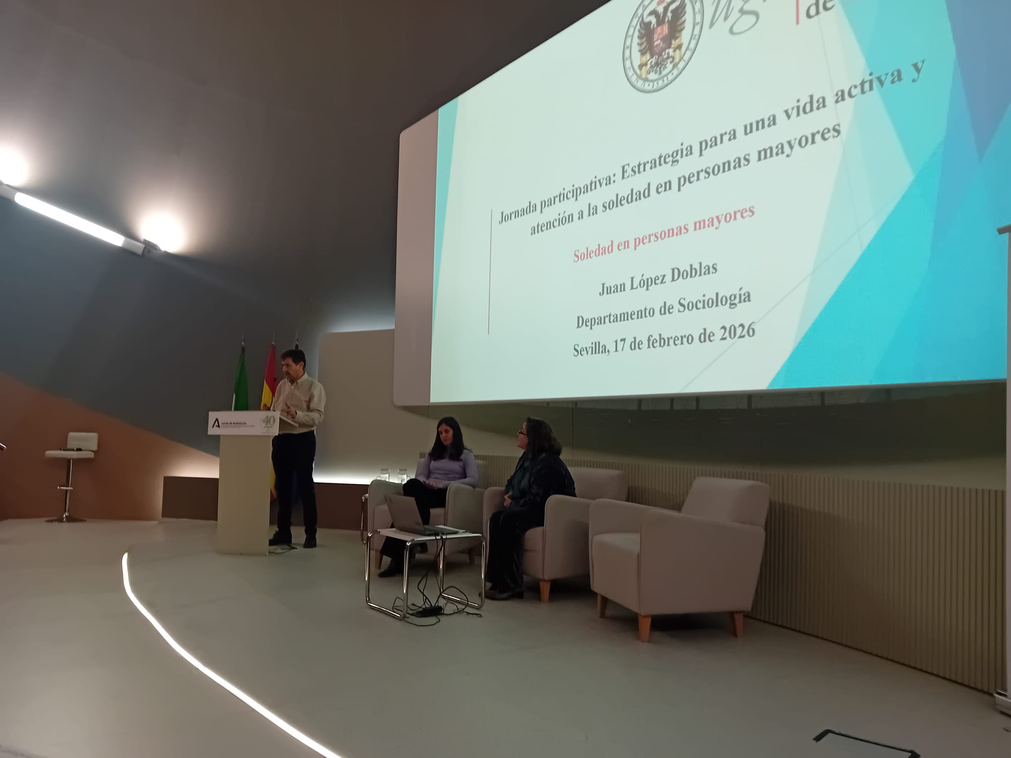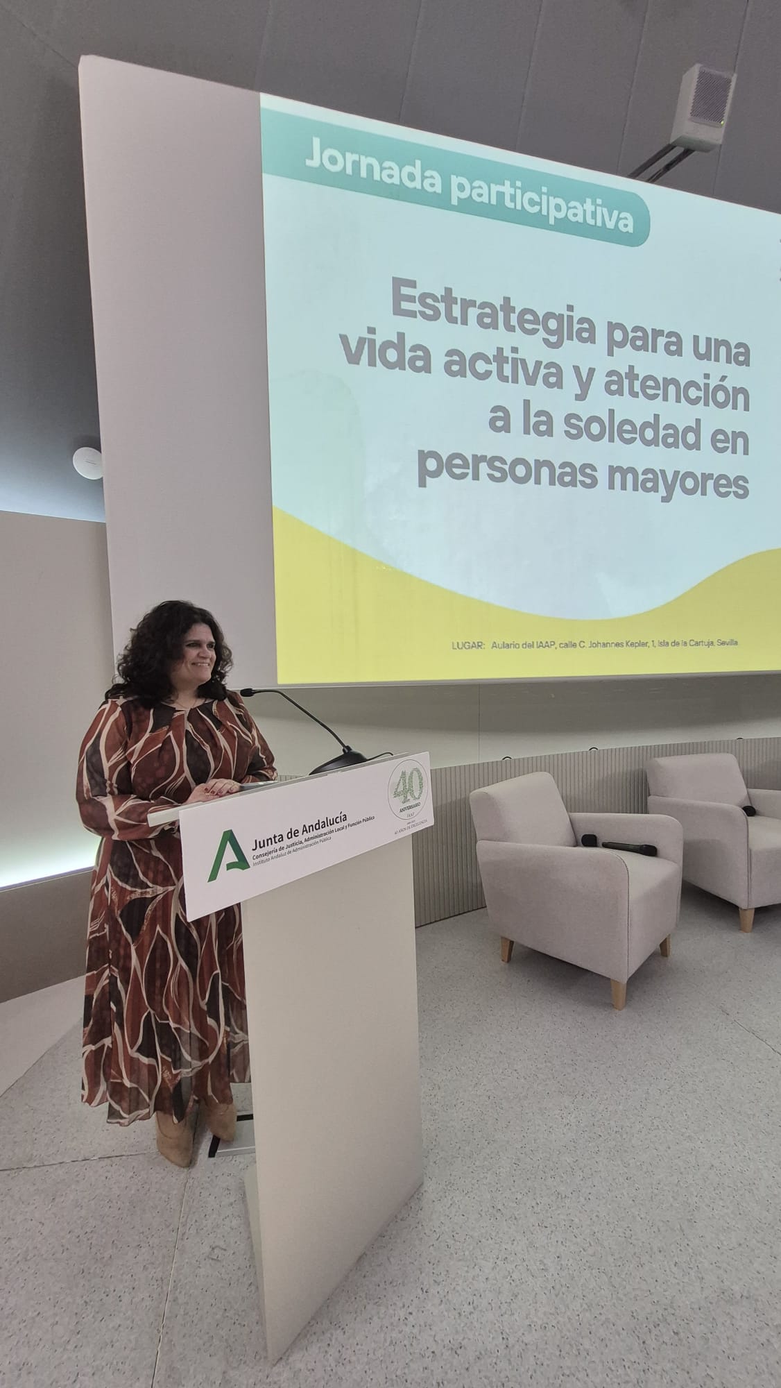 La sede del Instituto Andaluz de Administración Pública (IAAP), en la Isla de la Cartuja de Sevilla, acoge hoy la Jornada participativa “Estrategia para una vida activa y atención a la soledad en personas mayores”, un encuentro promovido por la Consejería de Inclusión Social, Juventud, Familias e Igualdad que congrega a profesionales del ámbito social, sanitario y comunitario con el objetivo de compartir conocimiento y avanzar en líneas de actuación conjuntas.