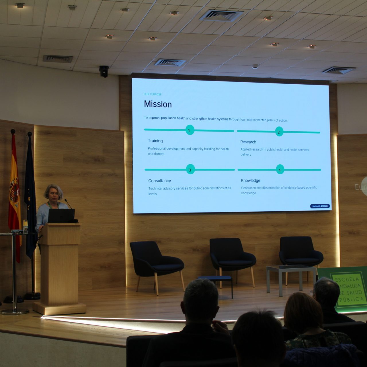 Tras la apertura, la jornada ha estado centrada en la presentación de proyectos estratégicos impulsados tanto por la EASP como por la UGR, mostrando el potencial investigador y la transferencia de conocimiento que sustenta el máster. Por parte de la EASP se han compartido iniciativas vinculadas a su condición de Centro Colaborador de la Organización Mundial de la Salud en Atención Primaria, así como proyectos en el ámbito de migración y salud, acción local en salud y salud mental. Desde la Universidad de Granada se han expuesto trabajos relacionados con la evaluación económica de tecnologías sanitarias, la política farmacéutica, la gobernanza y mortalidad en la COVID-19, la satisfacción con los servicios públicos de salud o el análisis de desigualdades en población europea LGBTIQ+.