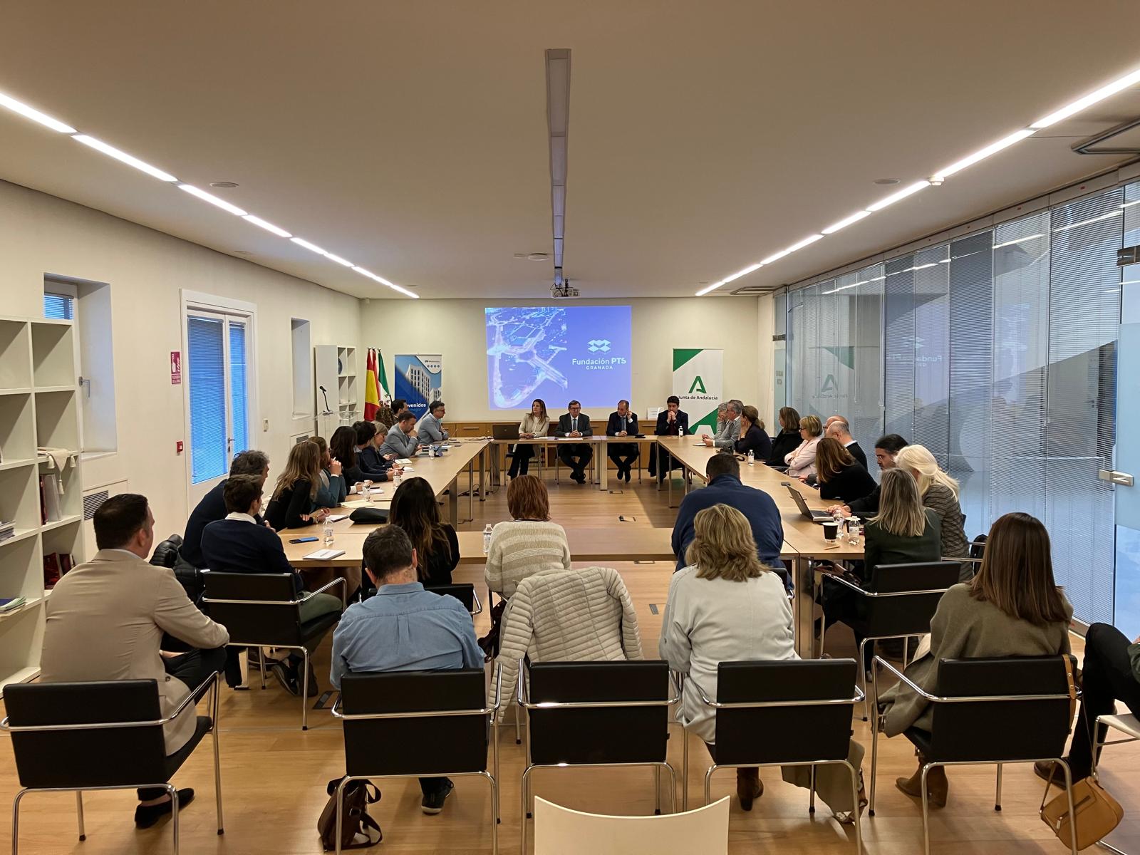 La sede de la Fundación PTS Granada acogió el encuentro de trabajos de esta red de recursos el martes 30 de abril. Desde Granada Salud se da acceso a las investigaciones y el talento de la Universidad de Granada; los programas formativos de la Escuela Andaluza de Salud Pública (EASP) o de la Fundación Iavante; el equipamiento especializado del Centro Pfizer de Genética y Oncología (GENYO), del Centro de Instrumentación Científica o del Instituto López Neyra de CSIC; las muestras y los datos clínicos del Biobanco del Sistema Sanitario Público de Andalucía; el Animalario; la financiación y los programas de apoyo a la gestión de la Cámara de Comercio de Granada o la Asociación de Jóvenes Empresarios, y la financiación pública a través de Andalucía TRADE, entre otros.