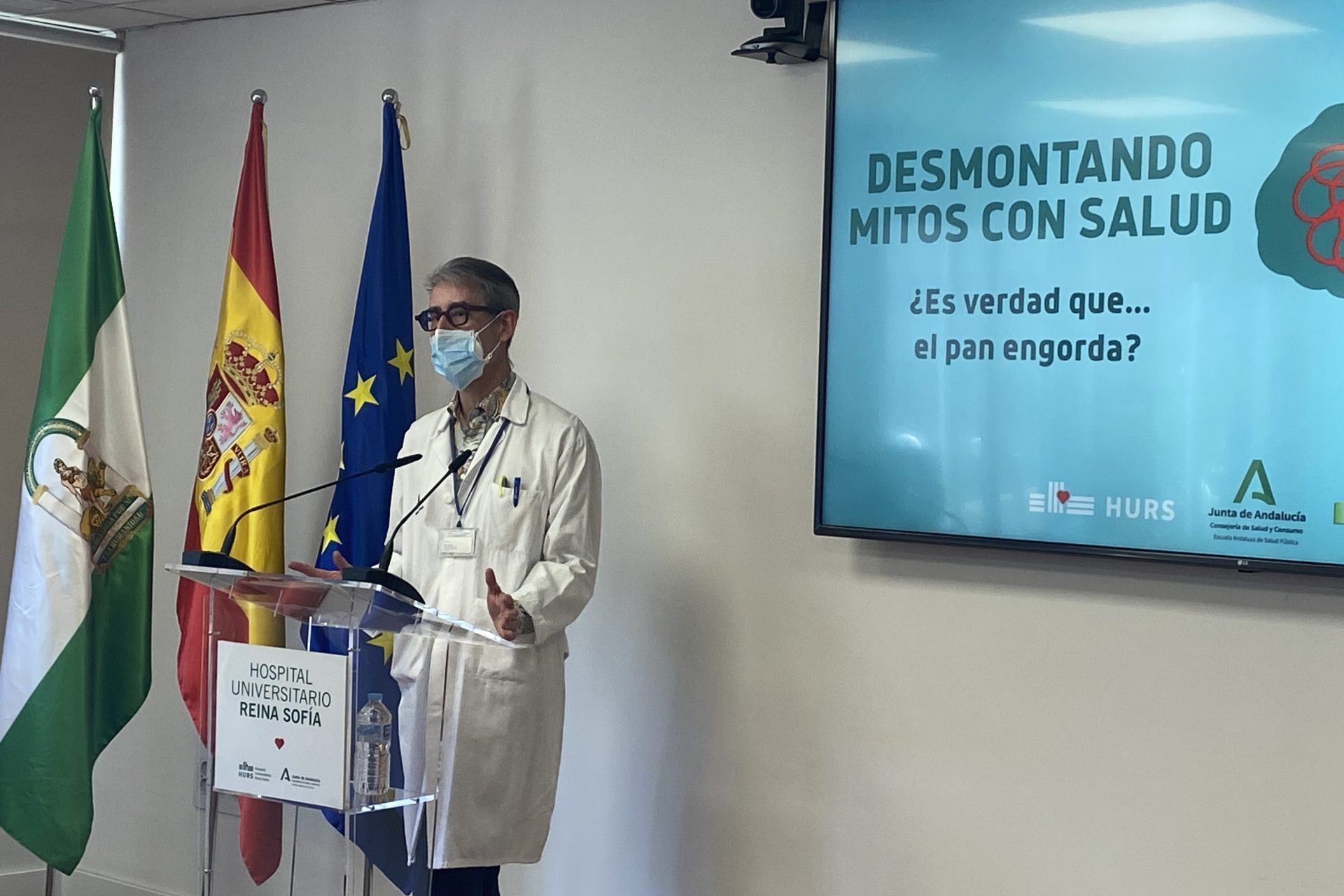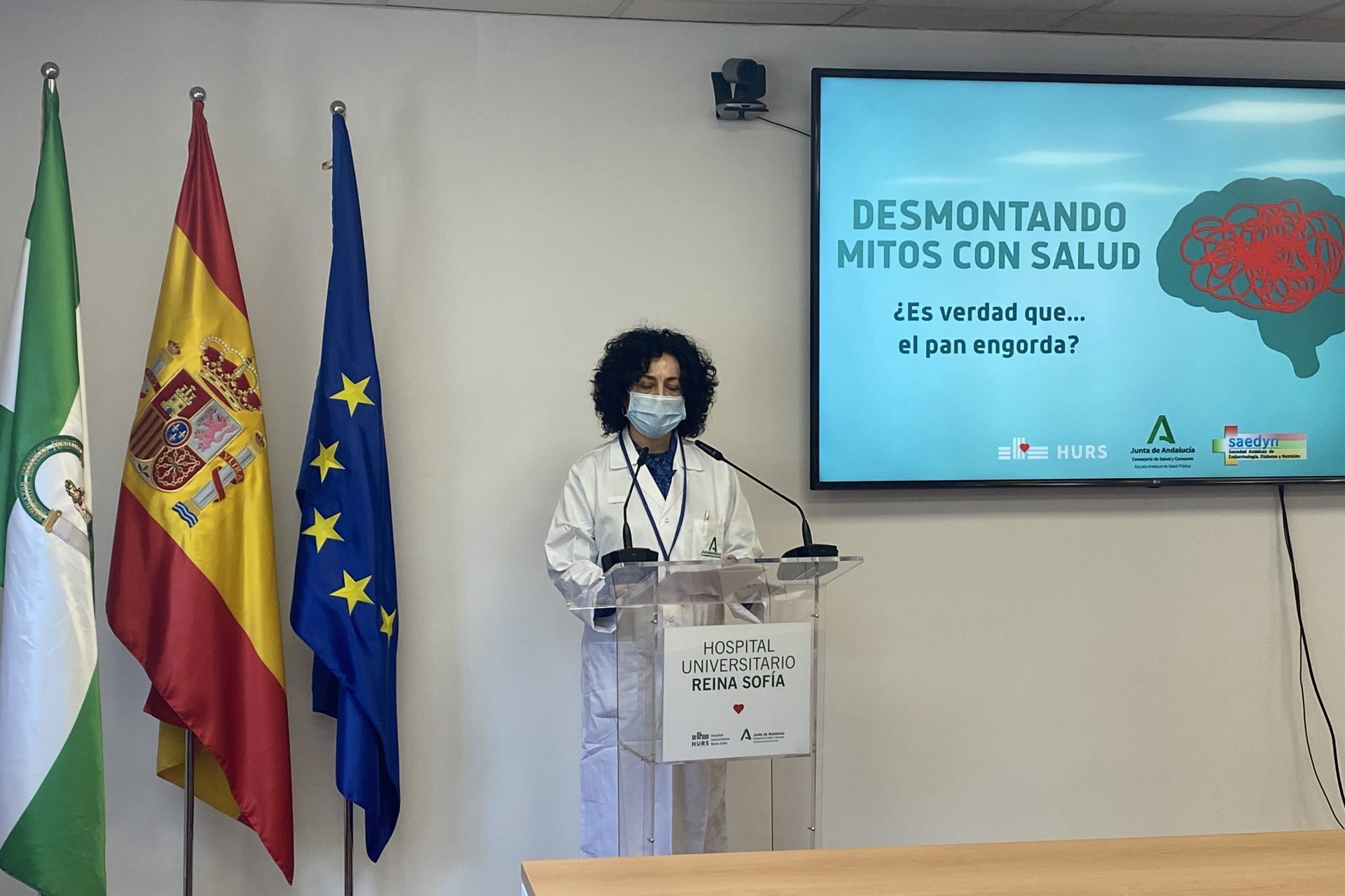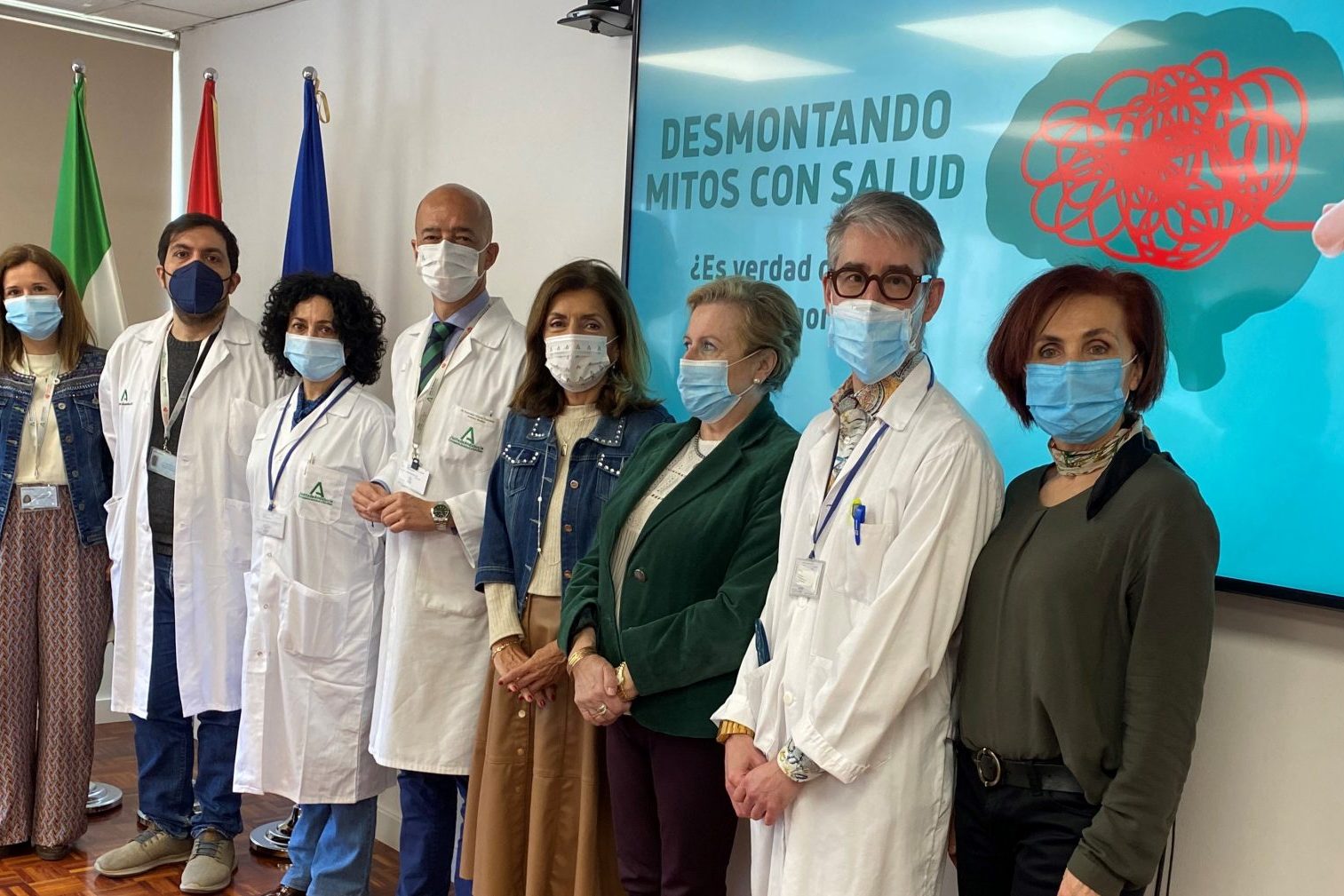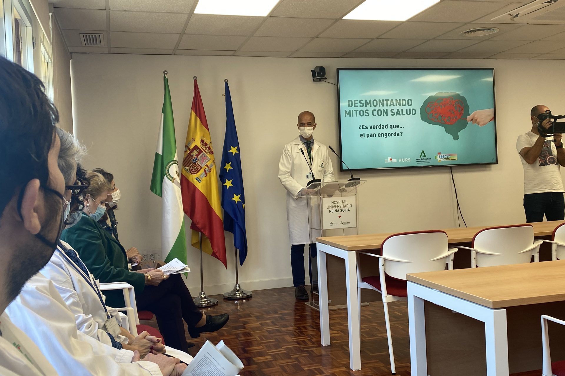 El Hospital Universitario Reina Sofía, la Sociedad Andaluza de Endocrinología, Diabetes y Nutrición (SAEDYN) y la Escuela Andaluza de Salud Pública (EASP) impulsan la campaña ‘Desmontando mitos con salud ¿Es verdad que…?’.  La delegada de Salud y Consumo, María Jesús Botella, ha presentado esta mañana la iniciativa acompañada por el director médico del hospital, Francisco Triviño, la directora de la EASP, Blanca Fernández-Capel, y la presidenta de la SAEDYN, María Ángeles Gálvez.