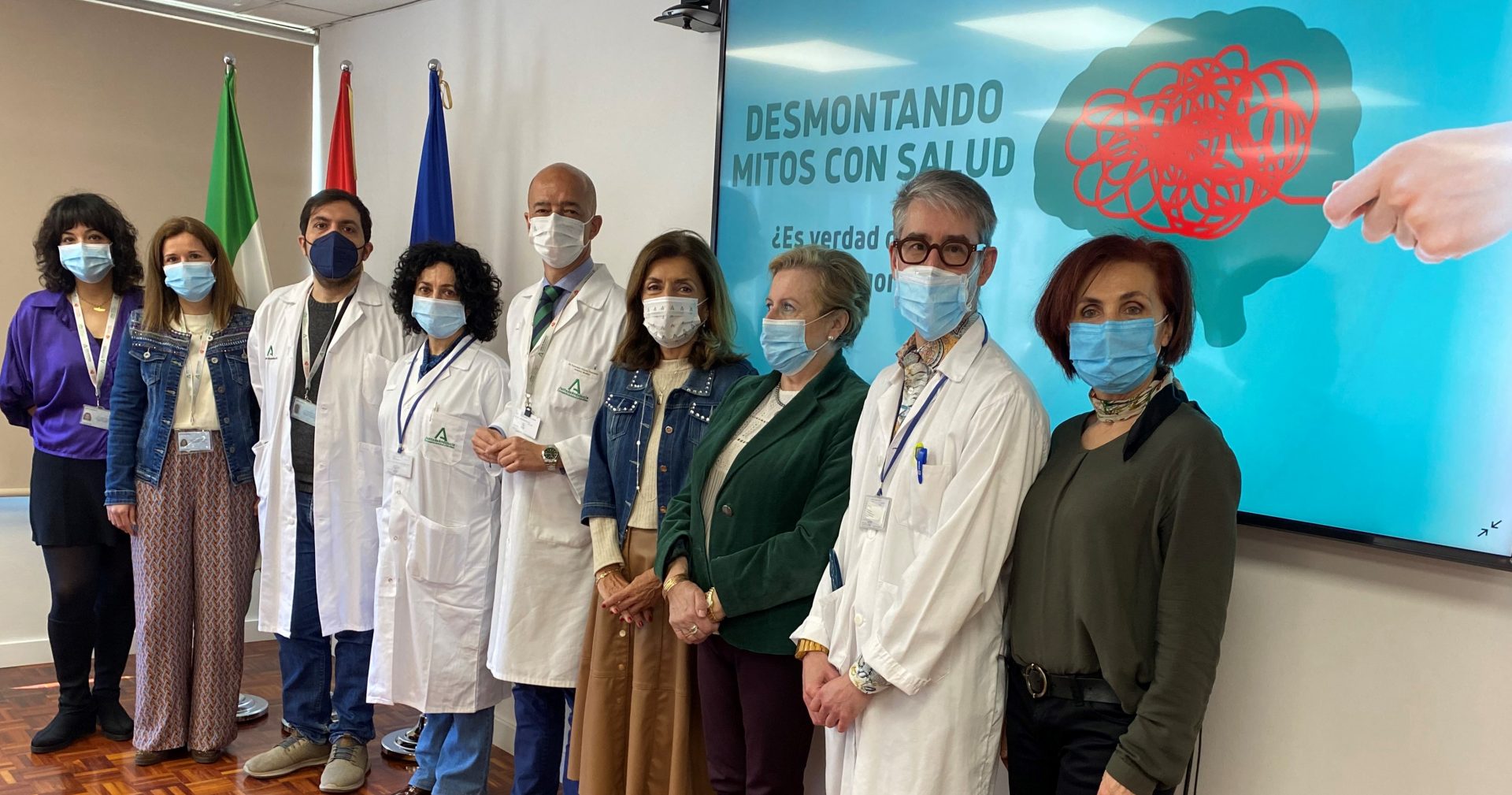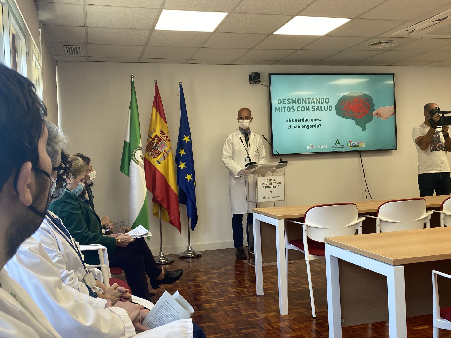 El Hospital Universitario Reina Sofía, la Sociedad Andaluza de Endocrinología, Diabetes y Nutrición (SAEDYN) y la Escuela Andaluza de Salud Pública (EASP) impulsan la campaña ‘Desmontando mitos con salud ¿Es verdad que…?’. La delegada de Salud y Consumo, María Jesús Botella, ha presentado esta mañana la iniciativa acompañada por el director médico del hospital, Francisco Triviño, la directora de la EASP, Blanca Fernández-Capel, y la presidenta de la SAEDYN, María Ángeles Gálvez.